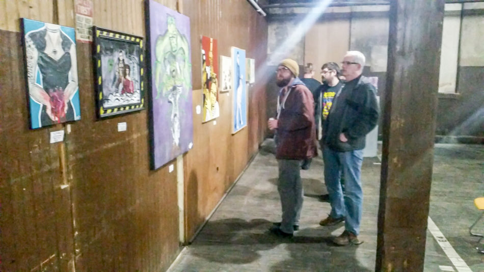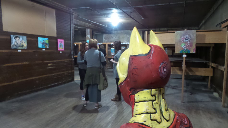 On April 1 and 2, a seemingly impromptu art exhibit appeared in the Briscoe Building, entitled, Defenestration Traveling Art Show. Jay Hill coordinated the show featuring his own work and the work of Paul Lundstrom and Andy Grode. The industrial space of a 100-year-old building provided just the right amount of grunge and style for this provocative art. Art was only available for viewing and purchasing from 7:00 – 9:00 PM both nights. Then the show disappeared. Many pieces were sold to area collectors and enthusiasts. This “Adult Only Show” was a success, says Hill, and he hopes to attract more artists to participate in future exhibits. // — Troy McQuillen