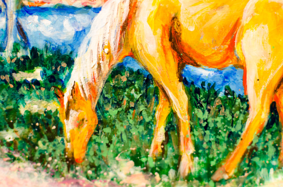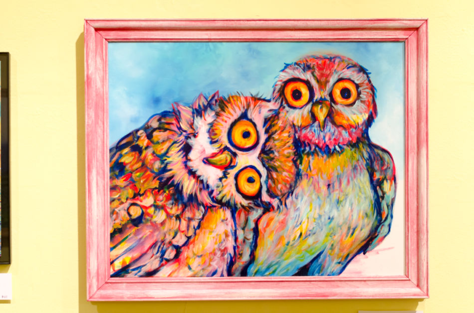 In 2013, she left South Dakota and took a break from painting for four months to volunteer for her cousin’s animal rescue ranch in California. When she returned she discovered that her style had completely changed from what it was when she left. Her skill with watercolors had fleshed out and she began experimenting with the “splattercolor” technique that she uses today.