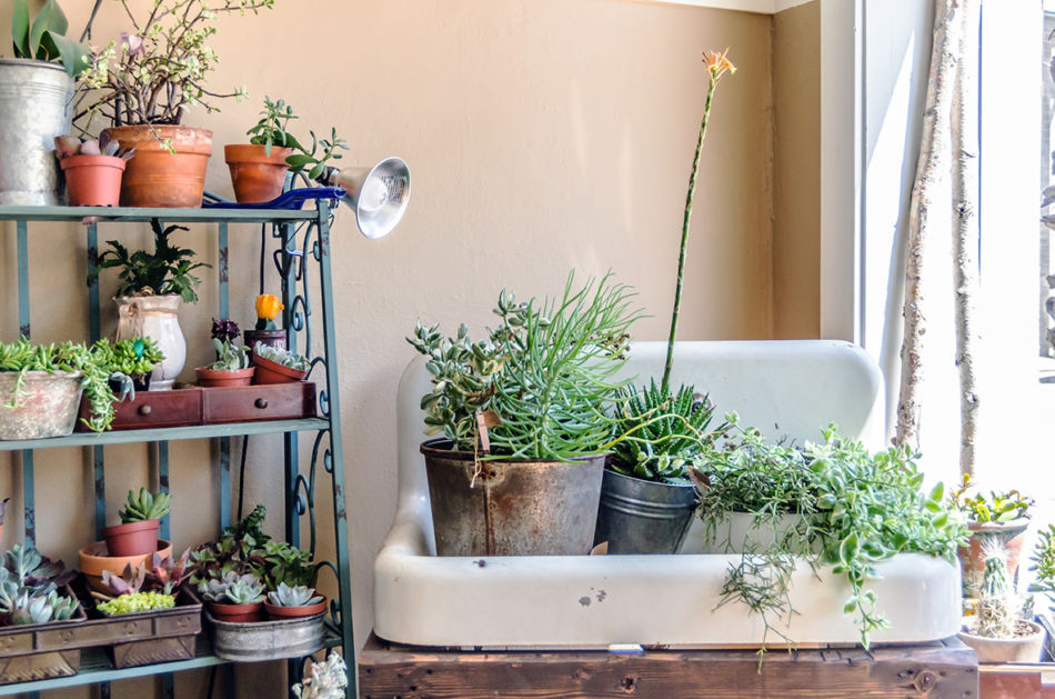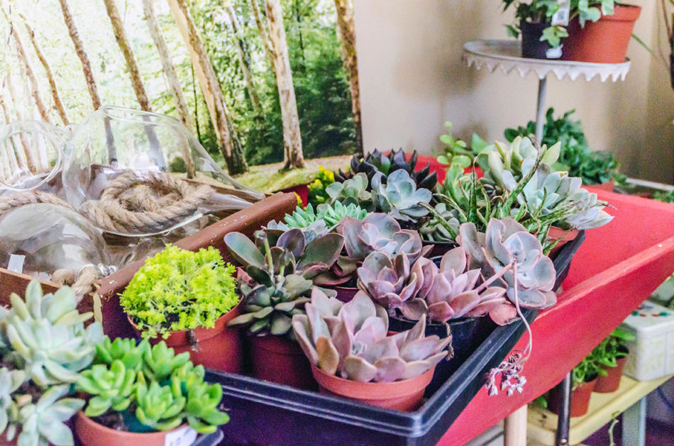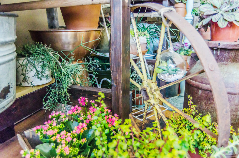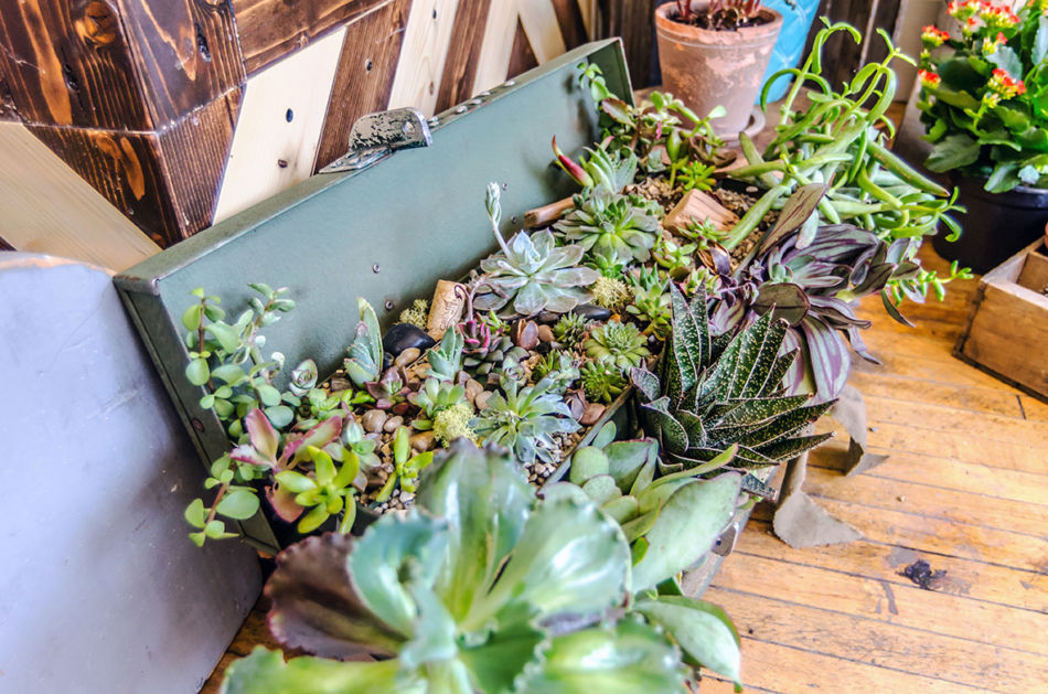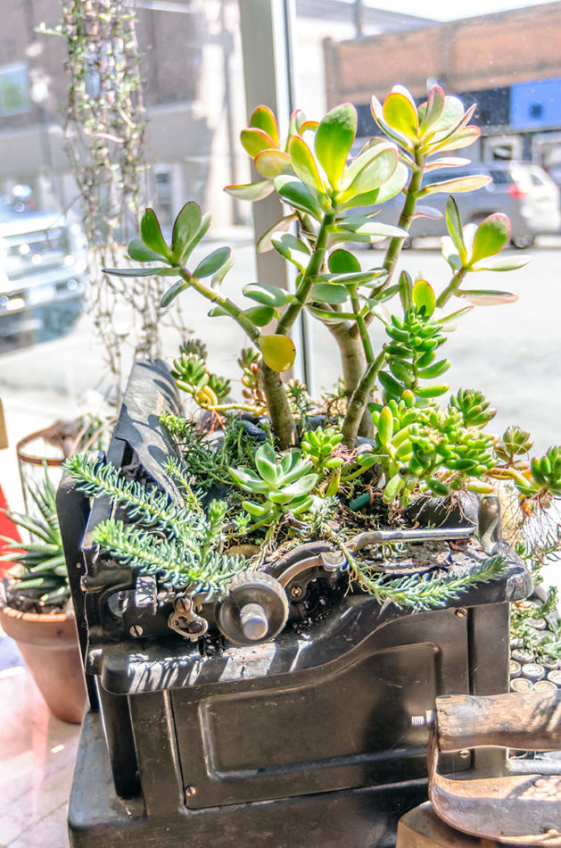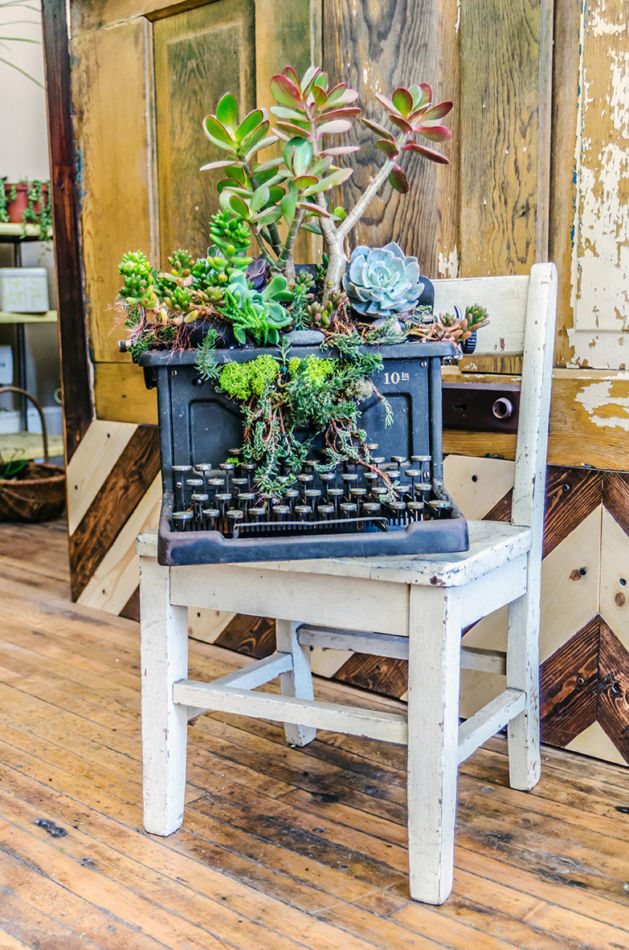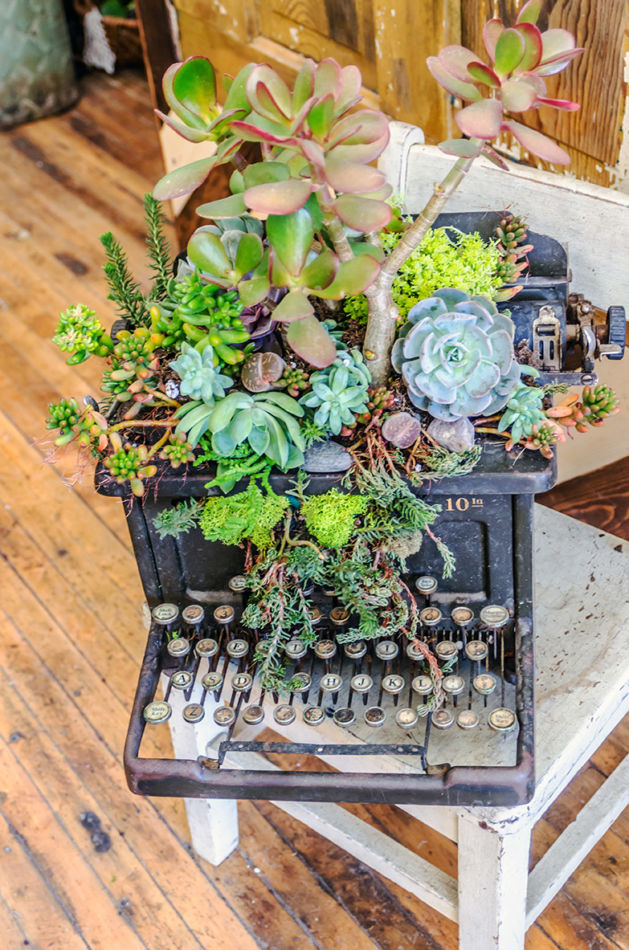The arrangements the two women create are as unique and charming as the plants themselves. They use a variety of antique containers – from old pots to toolboxes and even typewriters – to creatively house the plants. On holidays such as Christmas, Easter, and Valentine’s Day, they diversify their containers to match the theme.