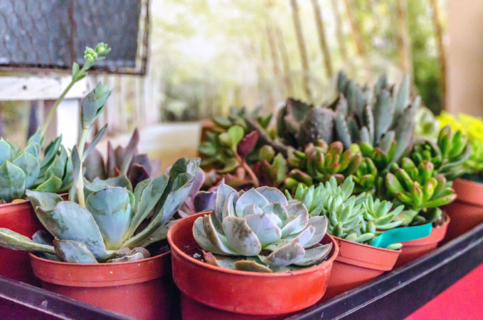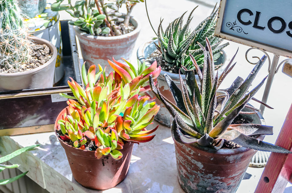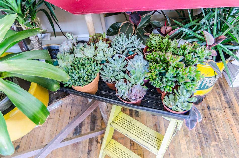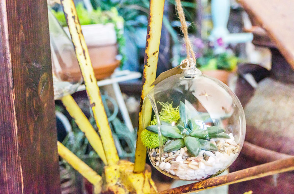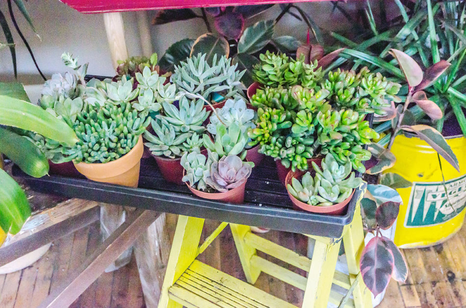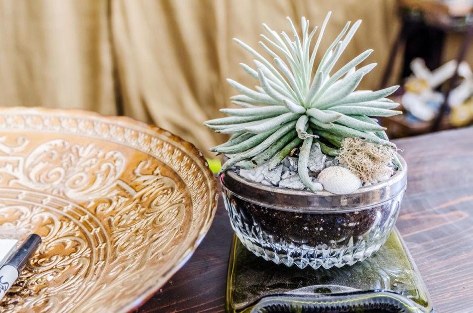 Succulents are a great alternative to fresh cut flowers because of how durable they are. They require little maintenance, minimal watering, and are resistant to extremely hot or dry climates. They’ve grown quite popular amidst the urban crowd in recent years, and it’s easy to see why. The succulents filling the quaint little space of Rustic Roots come in a variety of shapes, sizes, and colors. According to Juli, “No two plants are the exact same.”