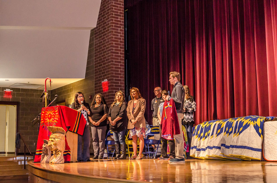 On April 30, 2016, the Native American seniors of Aberdeen Central High School and their friends and families gathered together to share tradition, song, prayers, and a meal to celebrate the upcoming graduation.