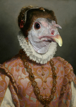 Since her adoption, Gobbles has created fans all the way from Timber Lake to Watertown and Sioux Falls and starred in several of Bobbi’s photography series. The first was the Masterpiece Collection, in which she dressed Gobbles and digitally painted the backgrounds so she could appear in her own versions of famous works of art such as Gobbalisa and Turkey with Pearl Earring. The second was a tribute to old Hollywood, featuring Gobbles as Marilyn Monroe and “Gobblezilla”. The third is an Old West series that is still in the works. “When the ideas hit me, I have to start working right away,” Bobbi said.