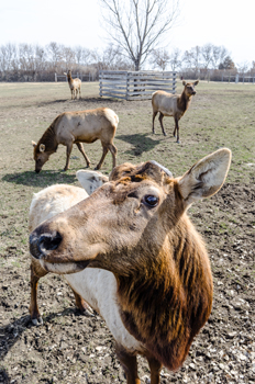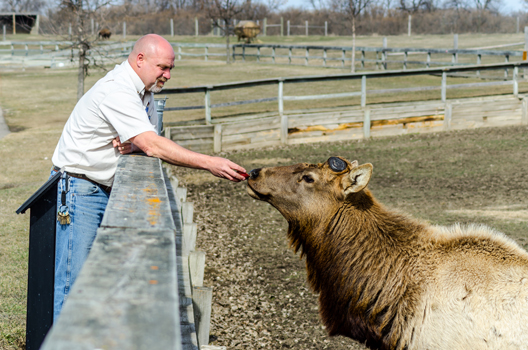 Because native animals are already well adapted to South Dakota’s harsh weather conditions, they are also easier to care for than non-native species. Under care from Aberdeen Parks and Recreation employees, the animals stay in the zoo year-round. In the wintertime, the animals need more hay and spend most of their time inside their shelters to keep warm. They are fed a special diet of corn and oats and have checkups every three months courtesy of Northern Plains Animal Health, in which they are given deworming shots and thoroughly inspected for any other medical needs. In addition to their usual daily meal, they also frequently receive “treats” courtesy of Ken’s Superfair Foods. “We worked out a deal with their old produce that they can’t sell anymore,” Mark explained. “We pick them up once a week and give them to the animals as treats.” They also use this process as part of training for the animals. During feeding time, the animals come up to the feed bunk, and that’s when they do their visual inspection to make sure they’re healthy. “They are very well taken care of. They have a great life out here.”