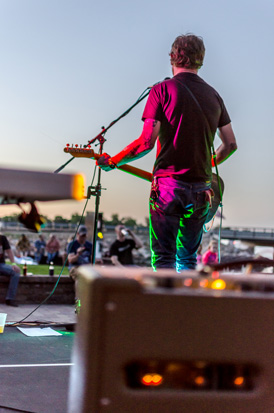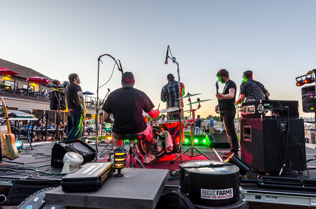 Naturally, then, a Barstools Prophet show is a party. Members of the band take swigs of beer between songs, out of cup holders on each mic stand. They talk to the crowd like they’re talking to a friend; they call each other out if someone accidentally plays a song in a different key – which happens, by the way. At a Saturday night show in June, the band smirked through an entire song, until Logan announced to the crowd at the end of it: “And that’s how you play the song a half step up!” That off-the-cuff humor is a staple of the Barstool Prophets shows, which radiate good vibes. “I can easily say this is the most fun band I’ve been in. We just have a blast every time we get together. I don’t even know for sure if we’re actually a good band, or if we’re just the best clowns in town,” Joel laughed.
