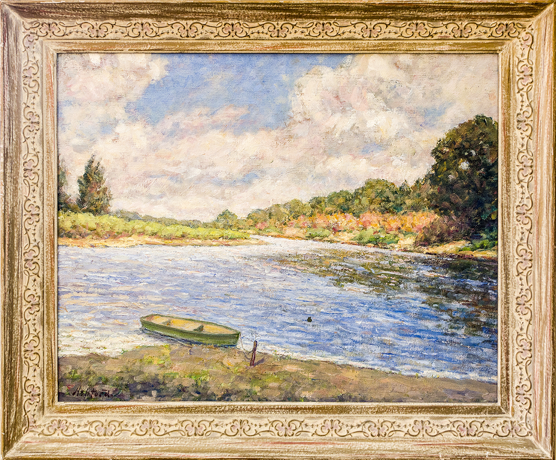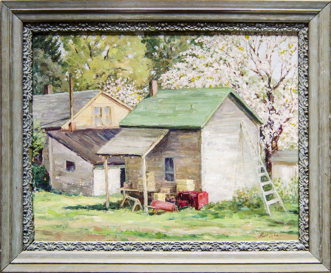 At an early age, Frank was encouraged to become a portrait painter by teachers and he became quite popular. He made his living as a portrait painter but dabbled in landscapes for his own pleasure. The James River, his family farm, and his family farm in Oregon were popular subjects of his landscapes.