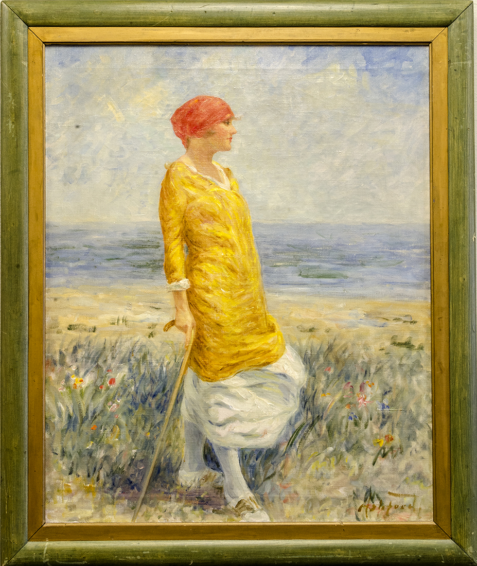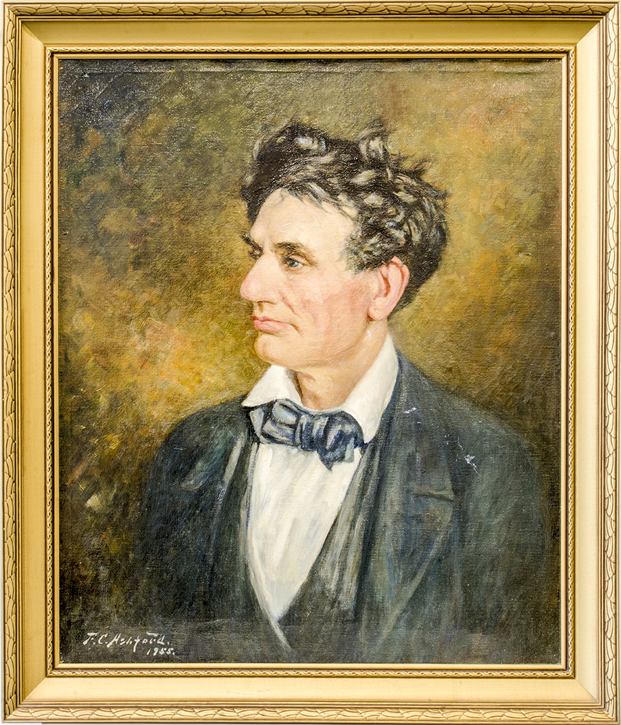 If you do an online search for Ashford, despite his prolific career, you won’t find much. Which is odd. By all accounts, he has fallen off the radar and his work is either coveted by owners, or totally forgotten. A Google search will reveal the very cool story of the Museum sending one of their Ashford paintings away for restoration, and discovering a perfectly intact second painting on the same canvas. Or you might find South Dakota Magazine’s recent article about the 10 must-see paintings in South Dakota. They feature another Museum piece by Ashford, named Woman with Shawl, above which is displayed in the foyer of the Museum. New owners found this painting in Ashford’s family farm home near Stratford in 1994. It too was sent away for restoration.