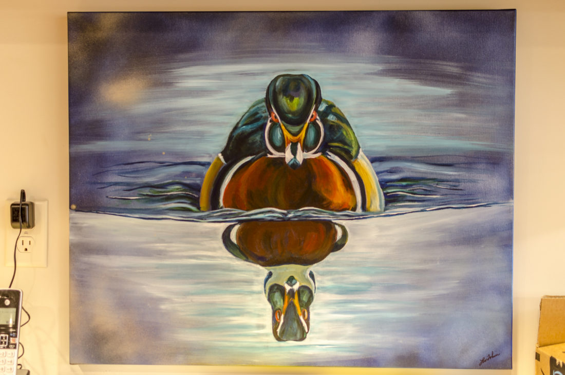 Lori is an Aberdeen native who has been painting for as long as she can remember. Her mother was an artist as well, and she says painting and drawing were always a part of her life while growing up. After attending college for teaching and art in Minnesota, she eventually moved back to the Aberdeen area with her husband, Marc. When their kids were in school, she began teaching art for the residents at Parkside Apartments part-time. Her paintings have been on display around town at places like Presentation’s Wein Gallery, Canterbury Deli, Winterfest, and the Capitol Theatre. Recently, she began exhibiting her artwork at 109 S. Main Street in a building space that also acts as the storefront for Marc’s radiant heat business. For now, she plans to open this gallery just by appointment and during special events downtown, and says she mostly uses her personal Facebook page to showcase her paintings to family and friends because for her painting for someone is all about connection. “When I do commission pieces it’s often times people asking me to paint something that matters to them and is quite personal. That’s why I want to paint for people that I know, because I enjoy putting a lot of thought into it and giving them a painting that means something to them.”
