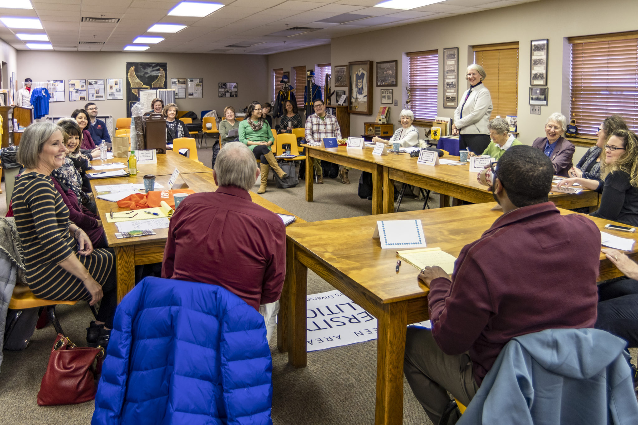 “Hi everyone, welcome! Gather in closer, we can fit more people in here.” Dr. Naomi Ludeman Smith, chair for the Aberdeen Area Diversity Coalition’s (AADC) board of directors, is ready to begin one of the nonprofit’s bimonthly meetings. There is laughter and chatter as the 20 or so present stakeholders shuffle their chairs together and squeeze in around a u-shaped table. It is warm and inviting in the room, with people from a variety of Aberdeen area organizations, backgrounds, and faiths seated side by side talking about all the regular things friends discuss, from restaurants in town to the impending snow. With notebooks out and coffee cups at the ready, the meeting officially begins with the introduction of new members and visitors, followed by an avid discussion around business both old and new.
