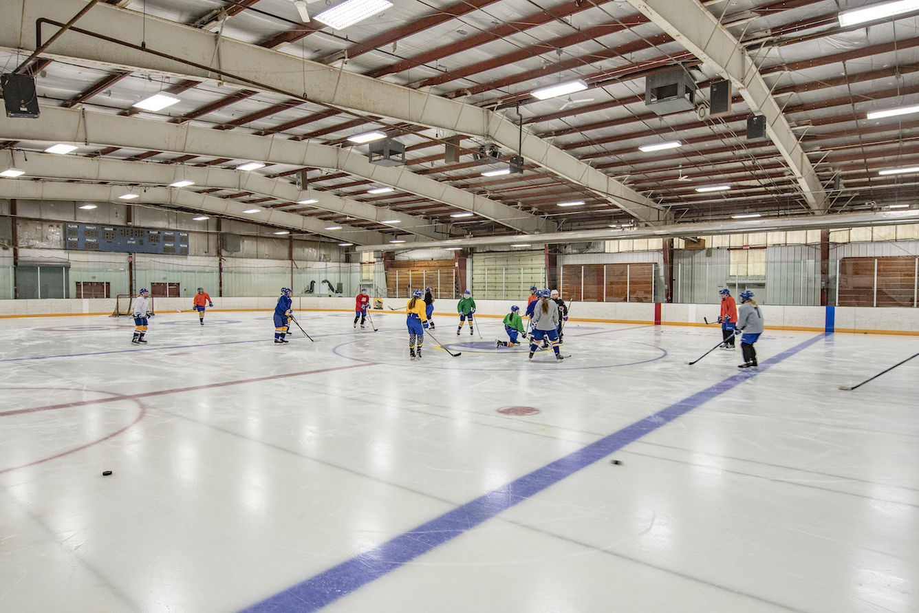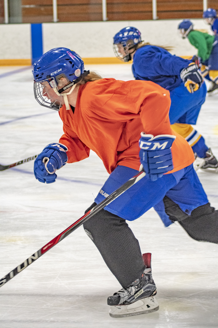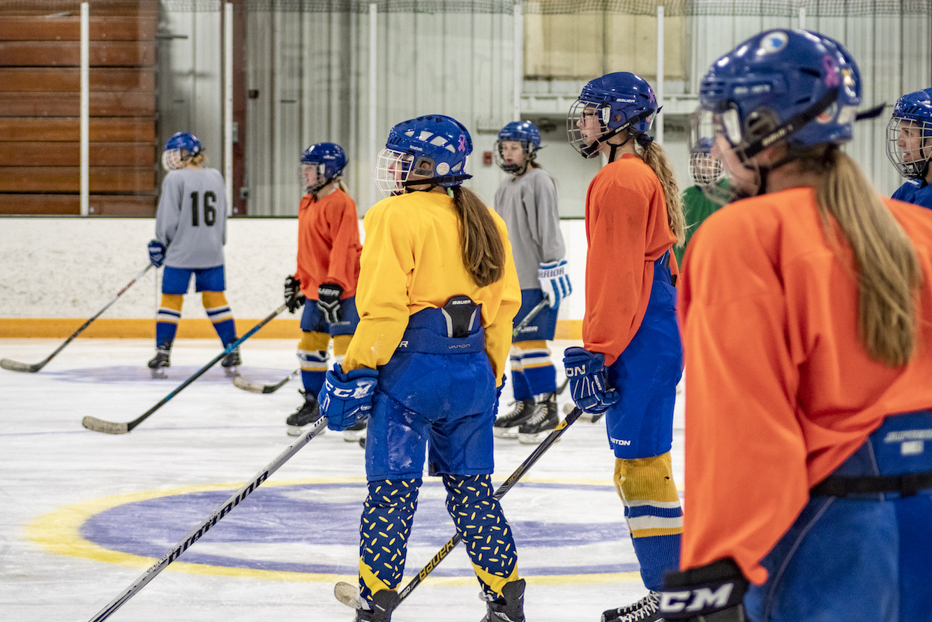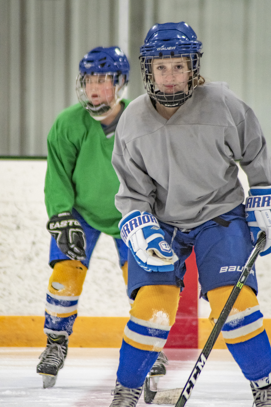 I’m at the Odde Ice Arena with my three young daughters, tying what seems like a never-ending length of shoelace on a small skate, while simultaneously searching underneath a bench for a missing glove. There are a lot of parents around me doing the same thing. We’re all here for our kids’ ice skating lessons. As we start to leave the lobby for the ice, the door from the locker rooms opens and a troop of hockey players on their way to practice passes us by. They’re covered in helmets and pads, but my seven-year-old sees a long ponytail hanging down the back of one of their jerseys, and she can’t help but blurt out, “Those are girl hockey players!” It could be my imagination, but I think she skates with a little more speed and liveliness in her step after that.