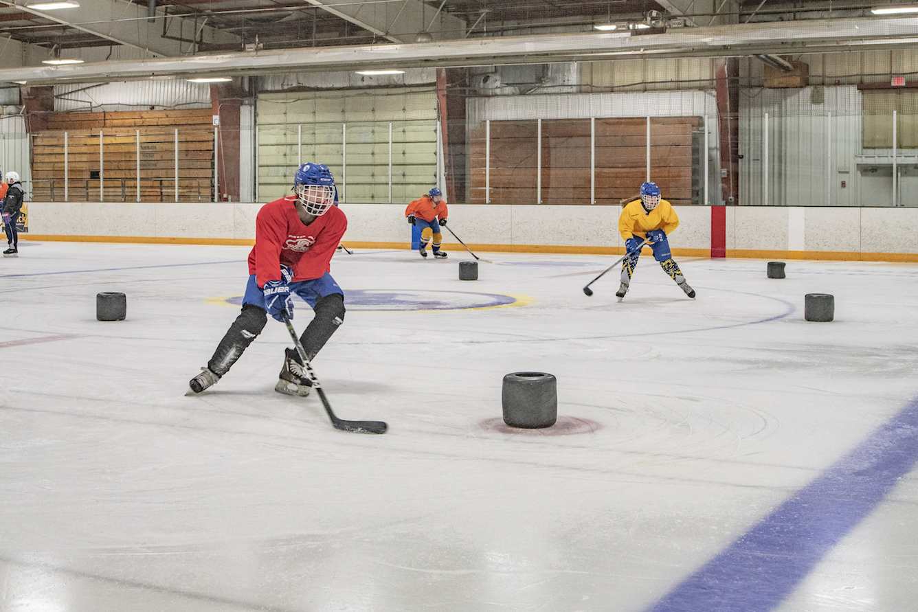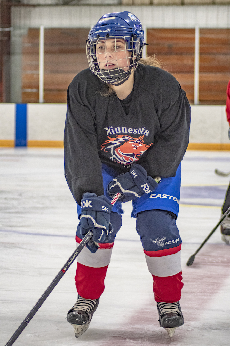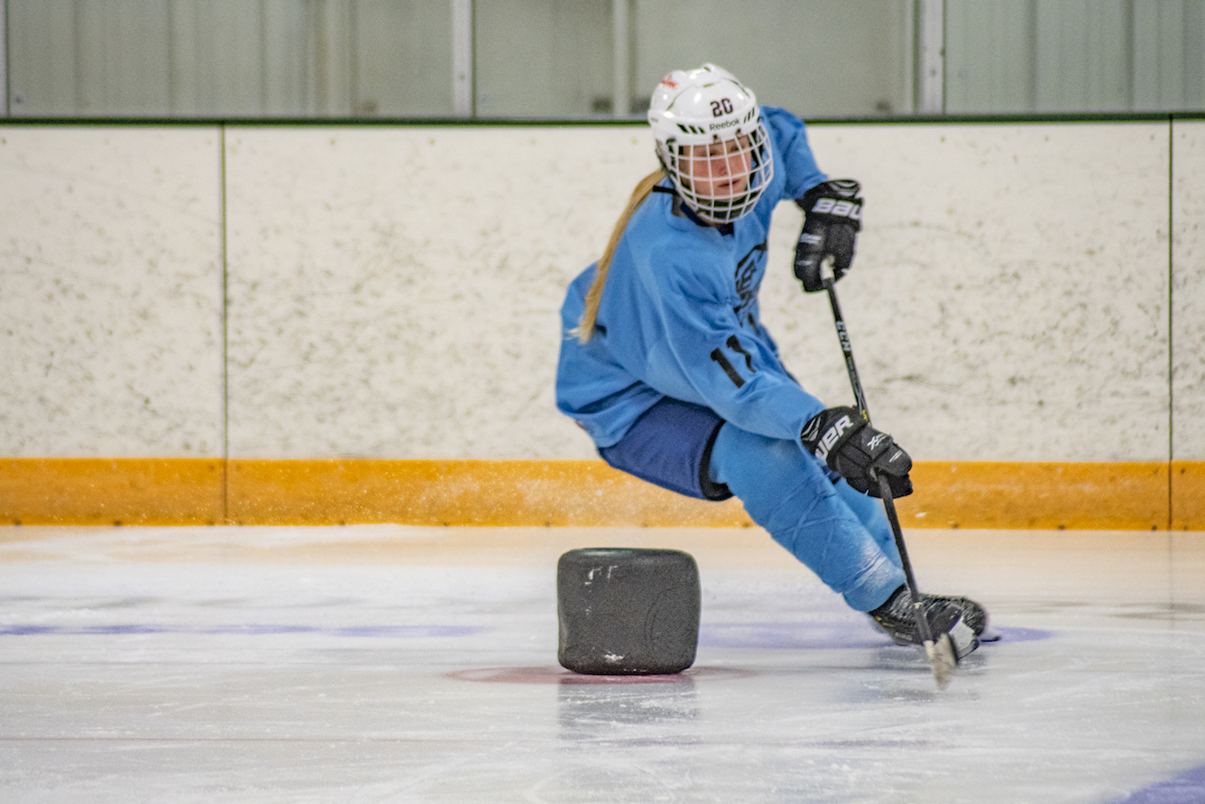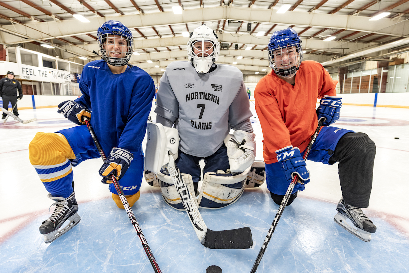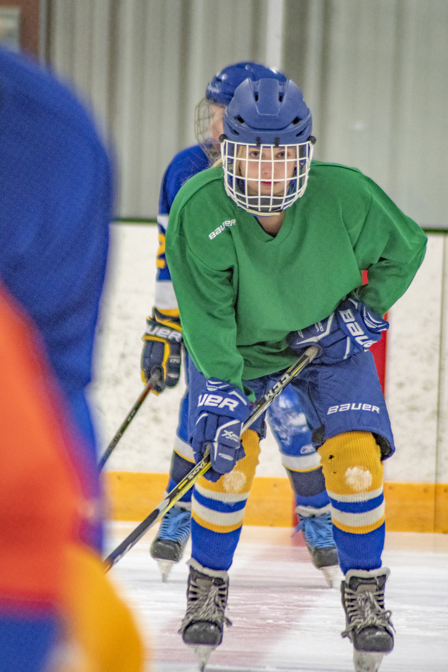 I’m at the Odde Ice Arena with my three young daughters, tying what seems like a never-ending length of shoelace on a small skate, while simultaneously searching underneath a bench for a missing glove. There are a lot of parents around me doing the same thing. We’re all here for our kids’ ice skating lessons. As we start to leave the lobby for the ice, the door from the locker rooms opens and a troop of hockey players on their way to practice passes us by. They’re covered in helmets and pads, but my seven-year-old sees a long ponytail hanging down the back of one of their jerseys, and she can’t help but blurt out, “Those are girl hockey players!” It could be my imagination, but I think she skates with a little more speed and liveliness in her step after that.