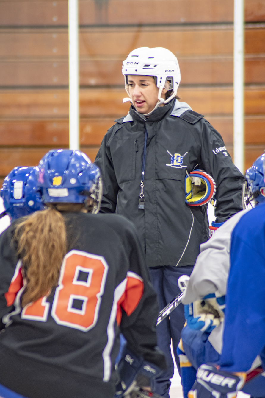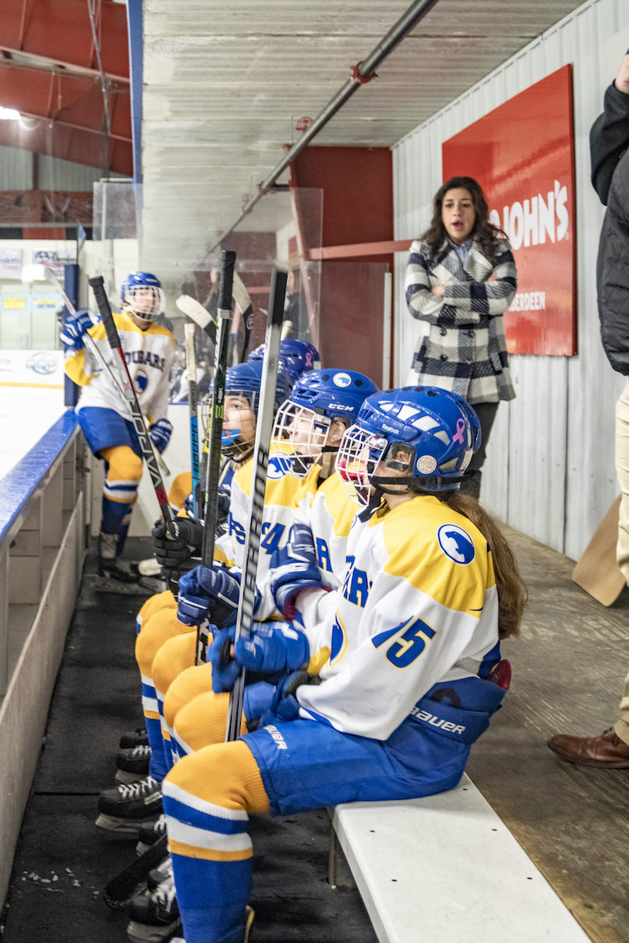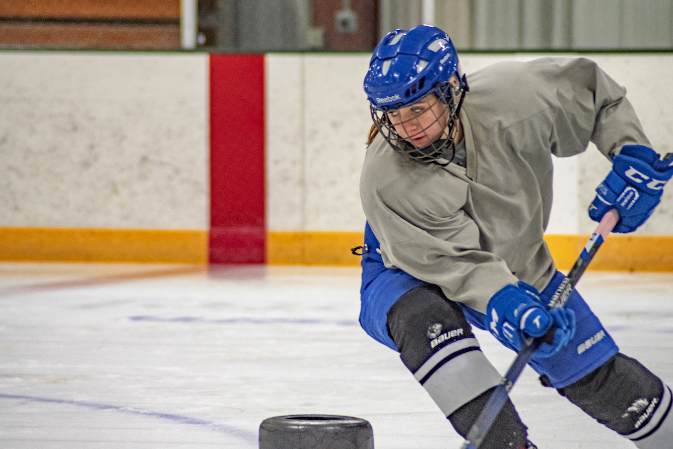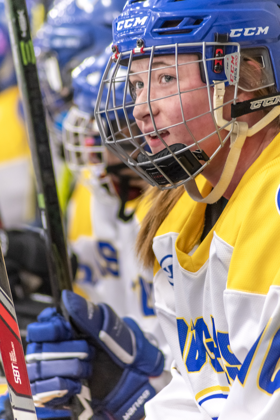 The Lady Cougars acknowledge there is some pressure that comes with a winning record in trying to maintain that momentum. Shelby says, “Having a good team, there’s a lot of weight on you because if you lose everyone’s really disappointed and sad. But that’s the point of hockey. You win some, you lose some. It’s not supposed to be all wins all the time, it’s supposed to be challenging too.” To combat any nerves, the team’s philosophy is pretty simple: practice. Being a Cougar takes a commitment of practicing four days a week along with playing games almost every weekend from October through March, many of which require travel to at least eight other towns. Coach Edwards says she doesn’t have any trouble with her team putting in the effort it takes to be successful.“These girls are hardworking, they all want to be at practice. Some of them we have to shoo away from the rink when they’re sick and convince them to go home and rest, but that’s a good problem to have.”