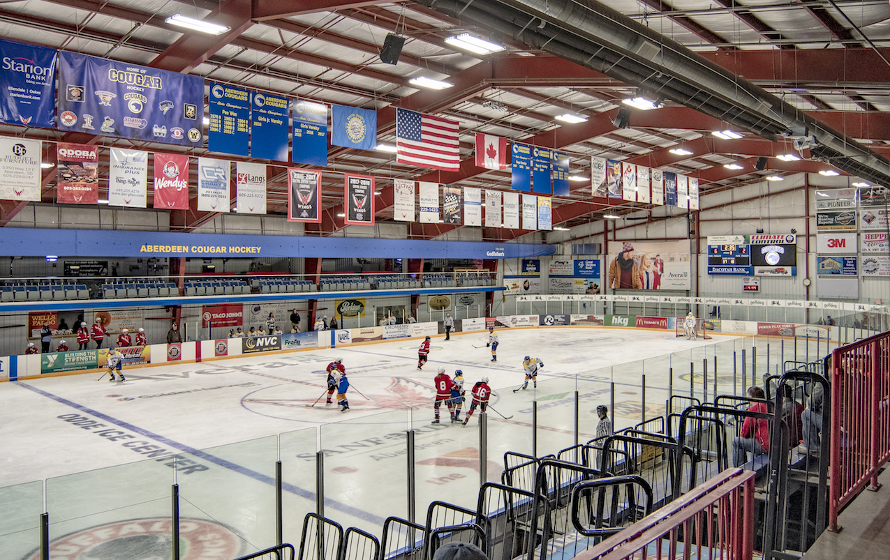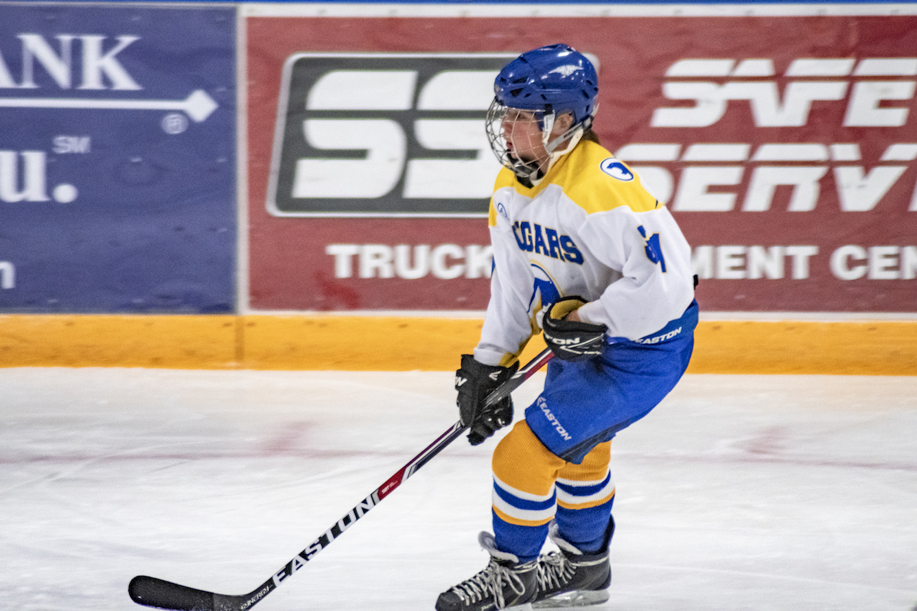 Coach Edwards leads the varsity and junior varsity girls teams with the help of her assistant coach Madie Brink, a sports management student at Presentation College. This is her third season with the Cougars, and her second as head coach. Before coming to Aberdeen, she played hockey for the Rushmore Thunder in high school, and later for an ACHA team while attending SDSU. Her prior coaching experience includes an assistant coach role with the Lady Brookings Rangers and her position as the first women’s hockey coach at Midland University in Fremont, Nebraska. From her standpoint as both a former player and now a coach, she says girls hockey is definitely growing both in Aberdeen and statewide. South Dakota recently added a U14 league for competitors under 14 years of age. The addition of this league has made it possible for Aberdeen to reach younger players and put together a girls U14 team for the first time this season.