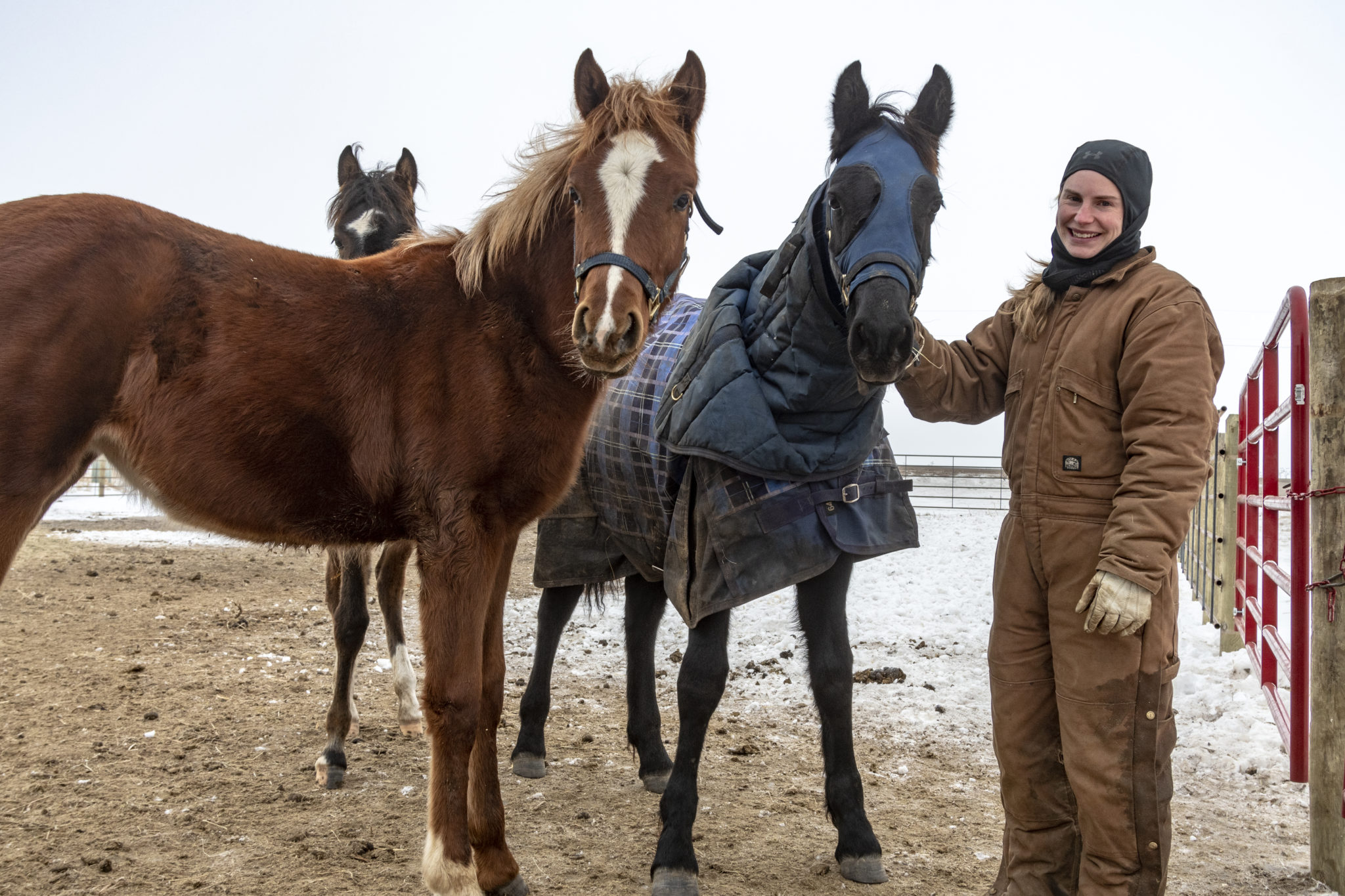 The traveling she refers to is their frequent road trips during horse show season. From April through September, Brittany, her show clients, and their horses hit the road at least twice a month. They go all over the country and into Canada to compete, taking with them on average four to six horses every trip. Brittany explains why shows mean so much to her and her riders. “For kids taking riding lessons, those lessons are like their practices and the horse shows are where they get to go compete against others and see what they can do.” Seeing her clients excel at shows means a lot in many ways. “This last year we took one of our youth, who takes riding lessons here, to the Canadian Nationals on a horse that Marg and I bred, raised, and then sold to a client. They won a Canadian youth national championship and numerous other awards, and for us to see this youth achieve that on a horse we brought up, it’s really exciting for us.”