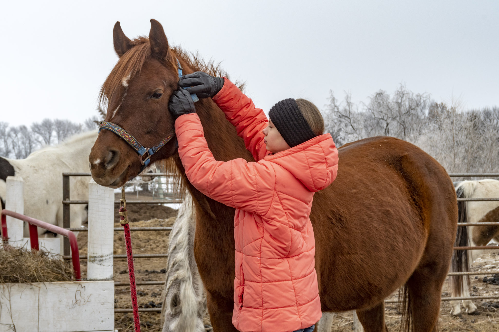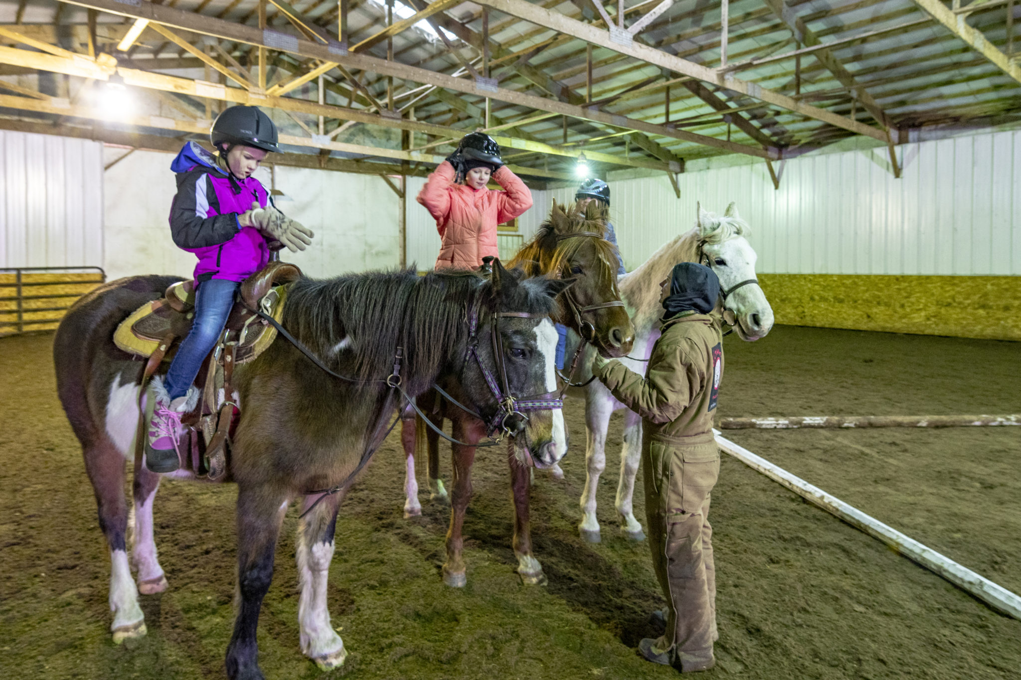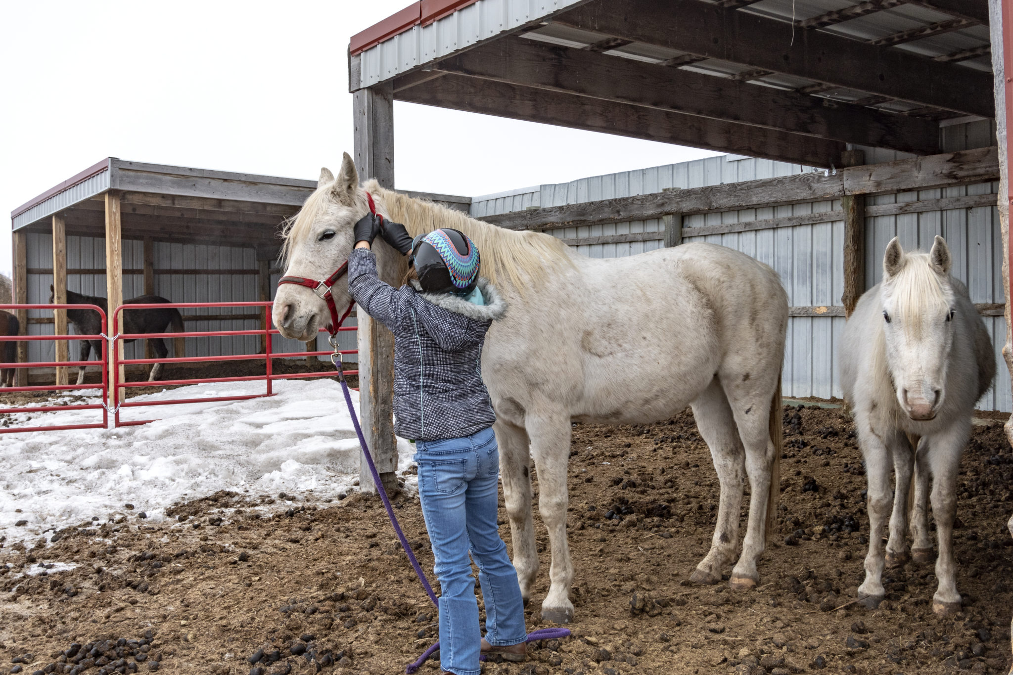 For a long time El Jo Mar was solely Arabians, a horse breed that held a special place for Marg. Brittany has expanded to show pintos and half-Arabians, and boards additional breeds like paints, quarters, and minis. With their success on the show circuit it might seem like only the best of the best take horse lessons at El Jo Mar, but that’s not the case. They have everyone from people who have never been on a horse all the way to national champion riders in their programs. During the winter months, Brittany gives about 30 riding lessons each week. This is her slower season though, as she gives closer to 70 lessons every week in the summer. She says her goal with lessons is first and foremost that students enjoy them and get a love for the horse. “I want them to learn some basic knowledge about a horse and to have fun. Once that’s established, I’m willing to take them wherever they want, whether that’s trail riding, showing, or another direction.” And beginners are encouraged to give lessons a try. “Children as young as five years old can start. We keep it really positive and take it as slow as they need, letting them groom the horses and then leading the horse around for them to make sure they’re comfortable riding.”