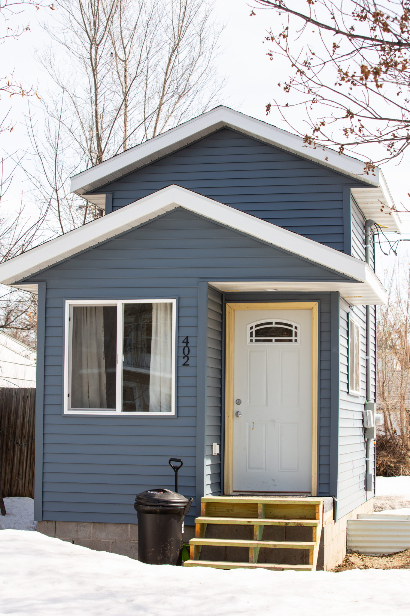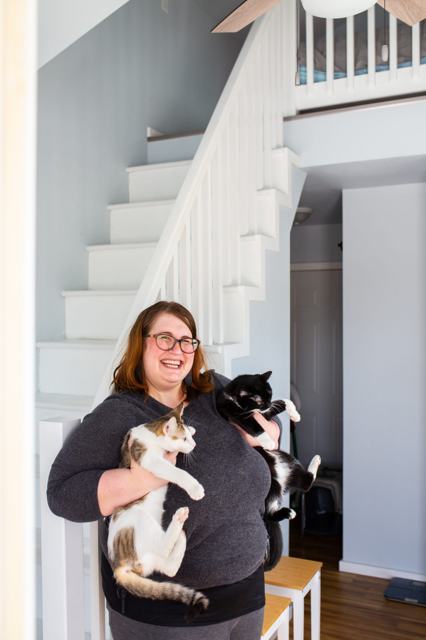 “I lived away from family for 17 years and decided it was time to fix that,” says Leslie Barbour. Leslie moved to Aberdeen from Texas about one year ago to be closer to her sister who lives here. She’s the director at CREATE Makerspace, cat mom to Jack and Betty, and now also a first-time homeowner. “I started to think about what I wanted to accomplish before I turned 40 and knew homeownership was on that list,” she says. Watching Tiny House Hunters on TV got her thinking that maybe the tiny-home lifestyle could work for her and help fulfill that goal of owning a home. After finding a lot in Aberdeen for a good price, she got busy searching for the right design. “I started looking at every website and blog I could find about tiny homes, trying to find ideas for what I wanted mine to look like,” she says. Eventually, she decided to base her plans on the Moschata Tiny House by The Small House Catalog, but included her own custom modifications, like adding a basement.