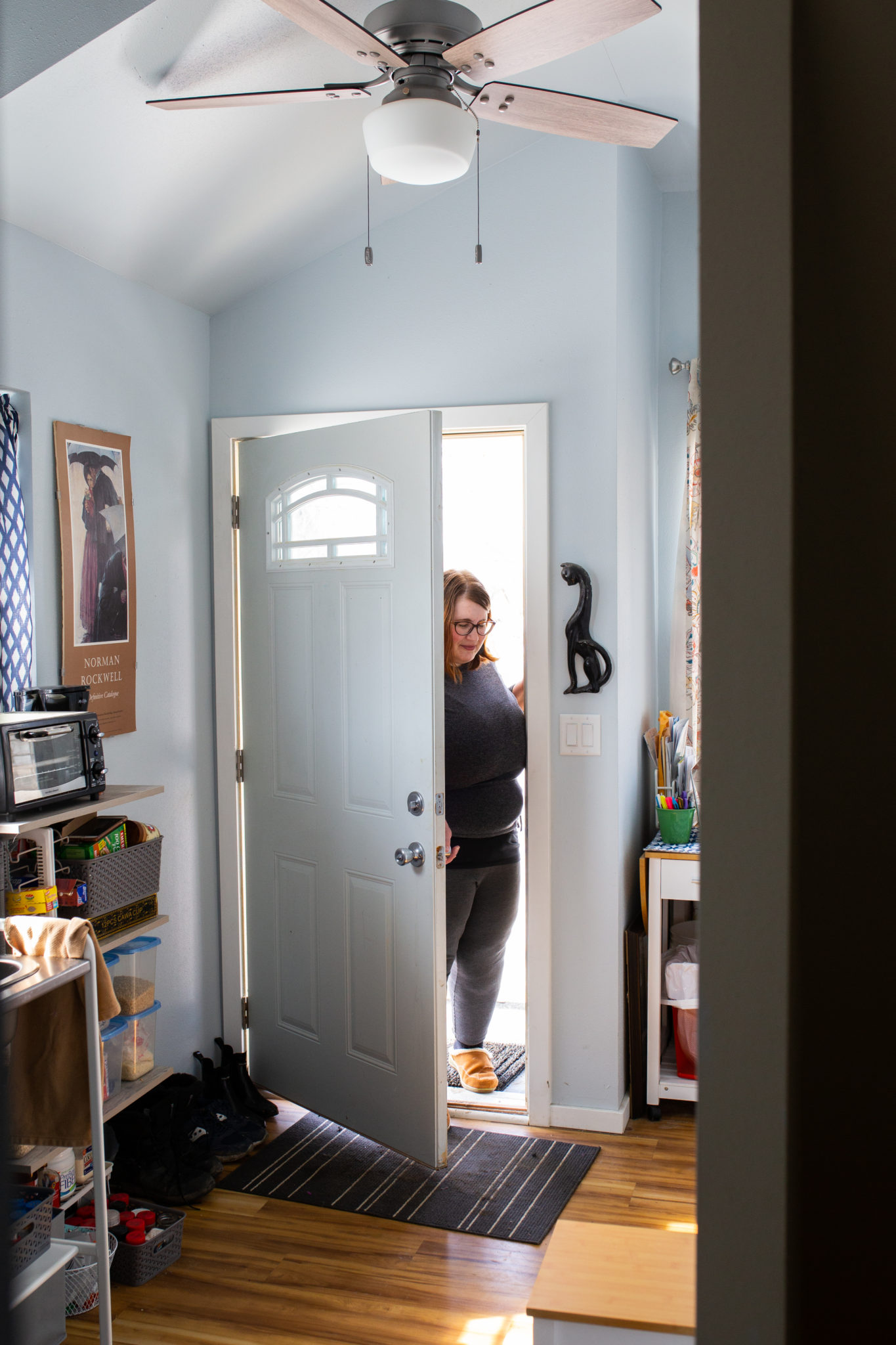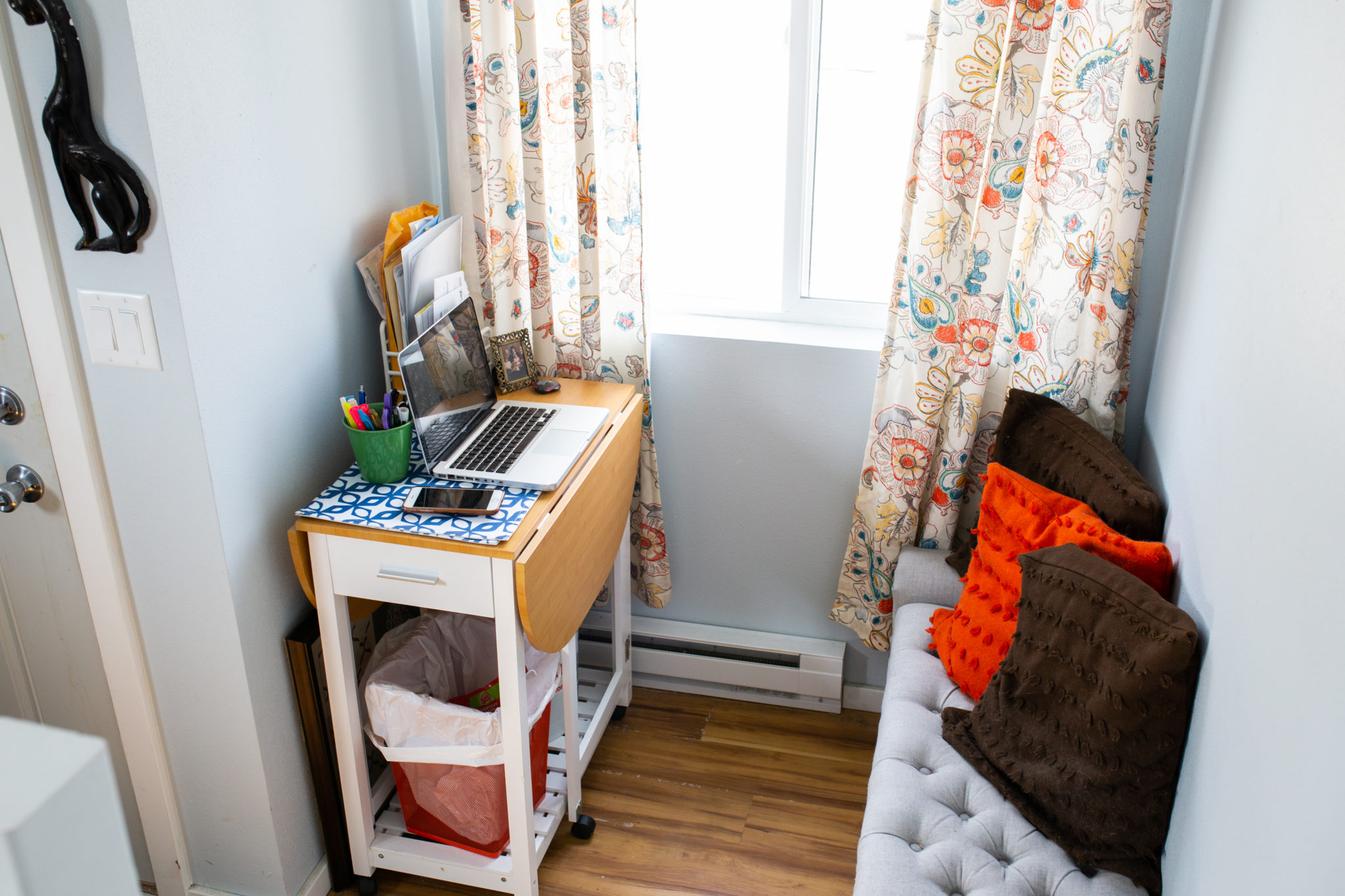 In December 2018, Leslie’s tiny home was finally move-in ready. She says the moving part was tricky at times, but that family and friends helped her along the way. Having lived overseas in the past, she knew how to significantly downsize her personal belongings. Still, a move into a 720-square-foot space takes a lot of introspection. “I brought in a few boxes at a time, unpacked them, then brought over a couple more boxes,” she explains.