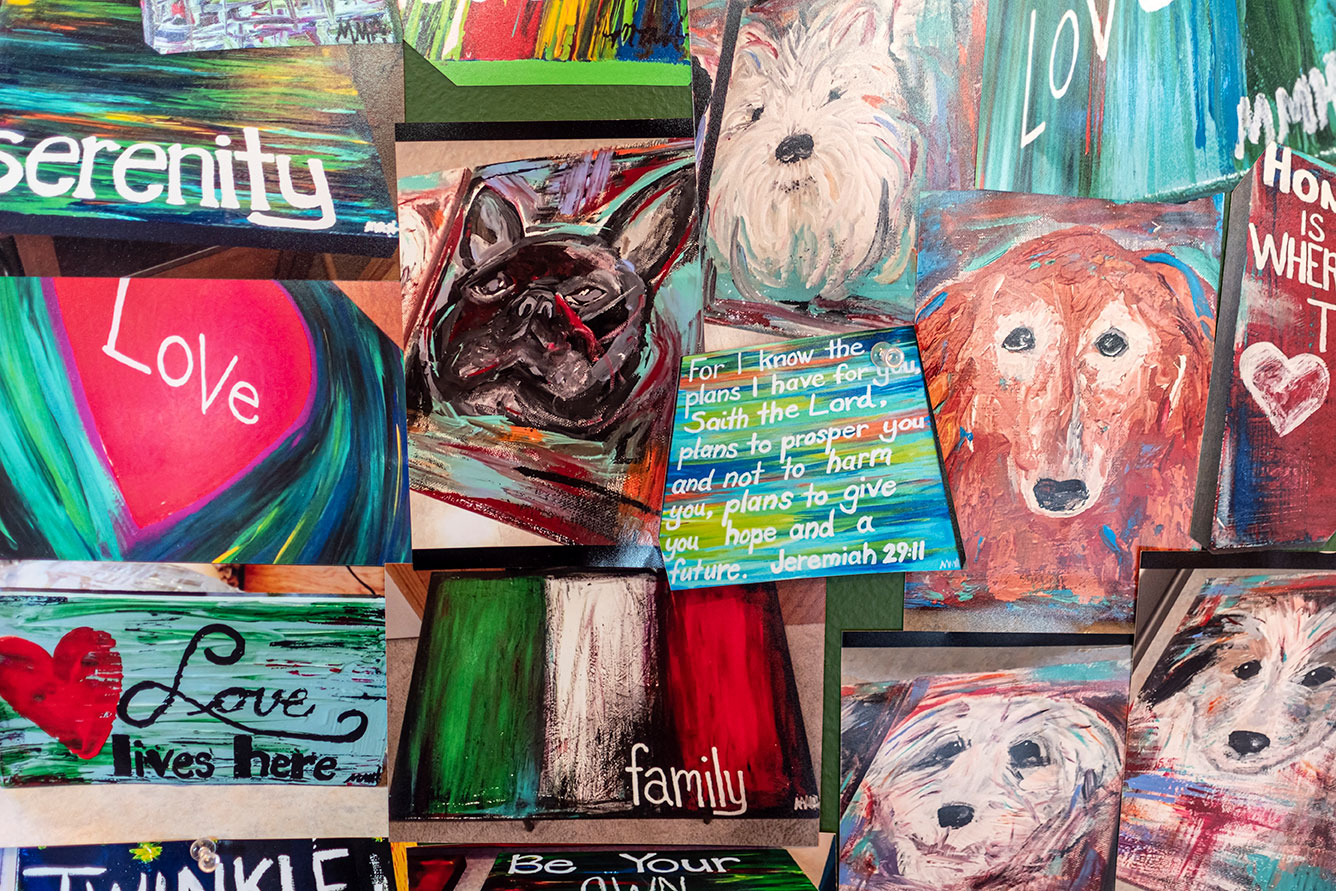 Painting has also become a way for Molly to step back from work and life and do a little bit of self-care, too. “It relaxes me, it’s my stress reliever. I’ll turn my music on, turn on my lights in my studio so it’s nice and bright, and open the windows and let the fresh air in and spend the day painting,” she says. As a self-taught artist, she doesn’t mind learning as she goes. “I’m experimenting with shading and different things and getting a niche for it. It’s really been a lot of fun.” // –Jenny Roth