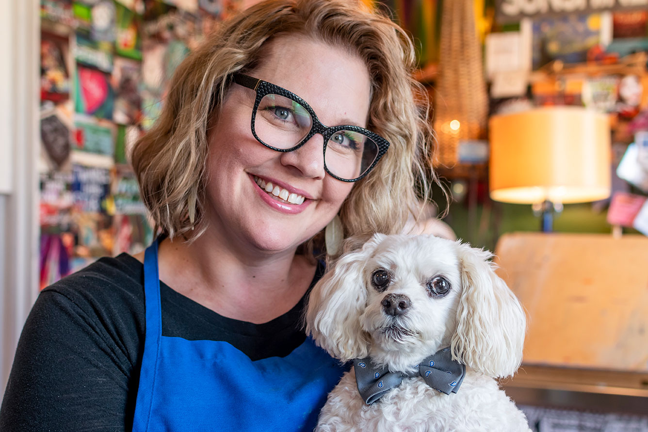 That was three years ago. Since then, Molly has turned the front entryway of her home into an art studio and has completed well over 100 Pico paintings of dogs and cats. Most people hear about her paintings through word of mouth, with her most popular being a 12 x 12 portrait for $100. The keepsakes aren’t just for those who have lost a pet though. “Some people want to have a painting while they still have their pets around because they’re obsessed with their dogs, like me,” she laughs. Molly’s own four-legged best friend, Brinkley, has been an active volunteer in Aberdeen for over a decade. Every week, Molly brings him to Prairie Heights Healthcare, where she and the 13-year-old Maltipoo spend a few hours going room to room visiting residents. She says despite battling some recent health issues, Brinkley is still a regular and a big celebrity at Prairie Heights. “He loves people, and you can tell the residents that like dogs really light up when he comes in.” For residents who have been at the nursing and rehabilitation center for a long time, Brinkley has become a welcome friend. “They’ll say, ‘That’s my dog,’ and he kind of is everyone’s dog there because he knows them so well,” she explains.