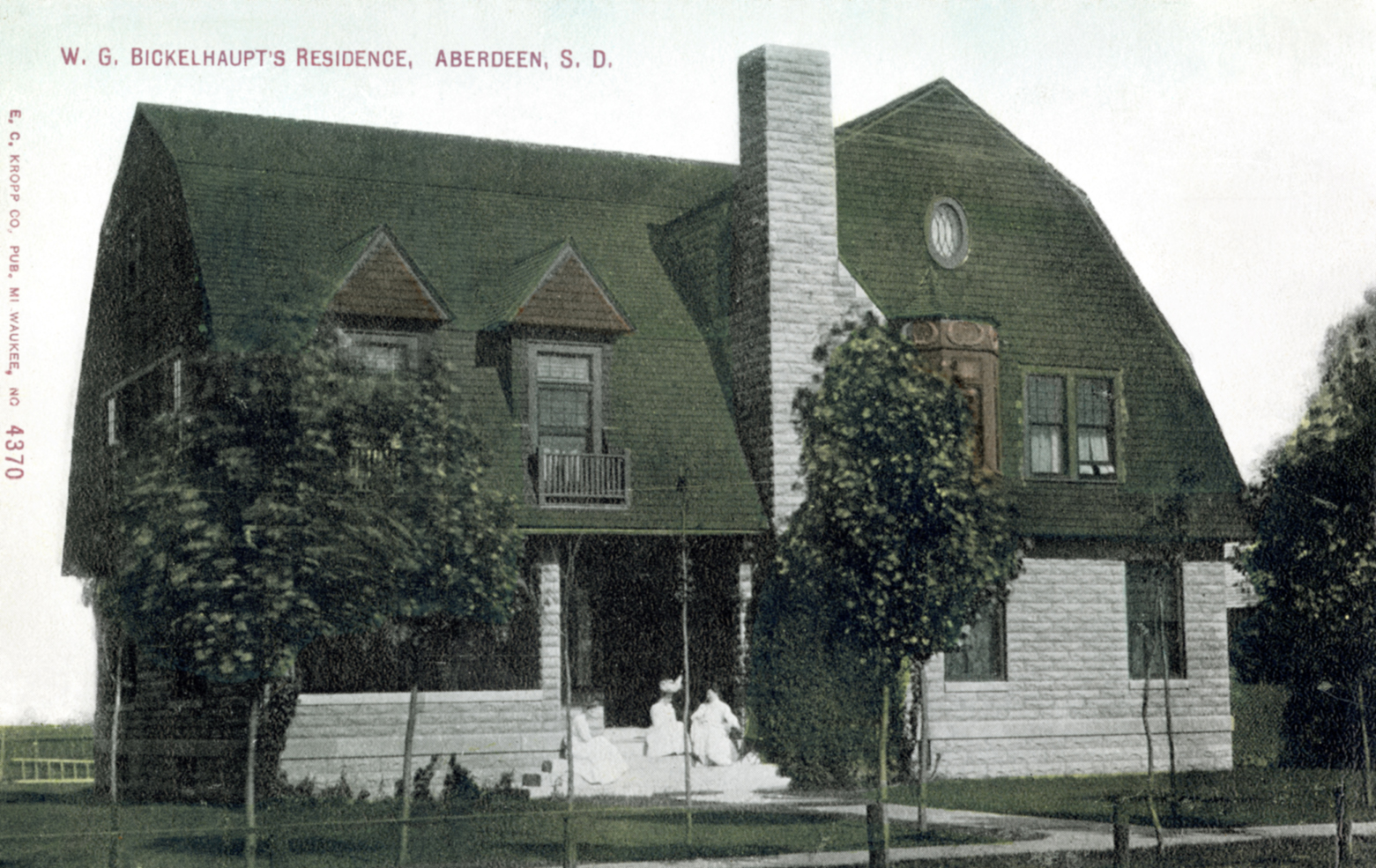 The Bickelhaupts were very well-known in Aberdeen and the emerging telephone business. William married Ida Owen of Wisconsin in 1887. He was already homesteading in Dakota Territory, and the newlyweds made their home in Roscoe, where all their children were born. William was in the grain business and owned elevators in Roscoe, Orient, Eureka, and Bowdle with a partner. In 1898, the Bickelhaupts moved to West Hill in Aberdeen (an up-and-coming “suburb”). It was then that William got involved with Mr. Zietlow and ultimately became invested in the telephone business. All the children were very successful and married women from other prominent Aberdeen families (like Jewett and Easton). Two of the sons served in both World Wars.