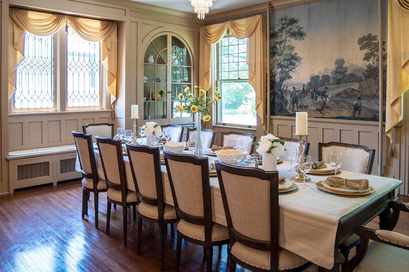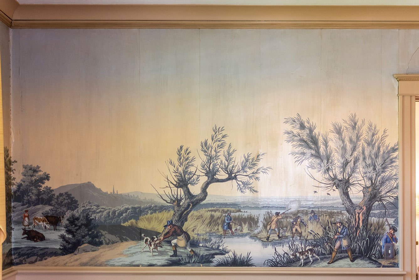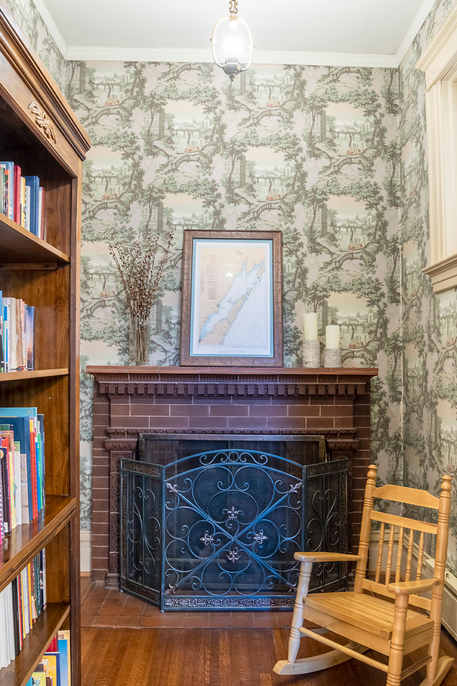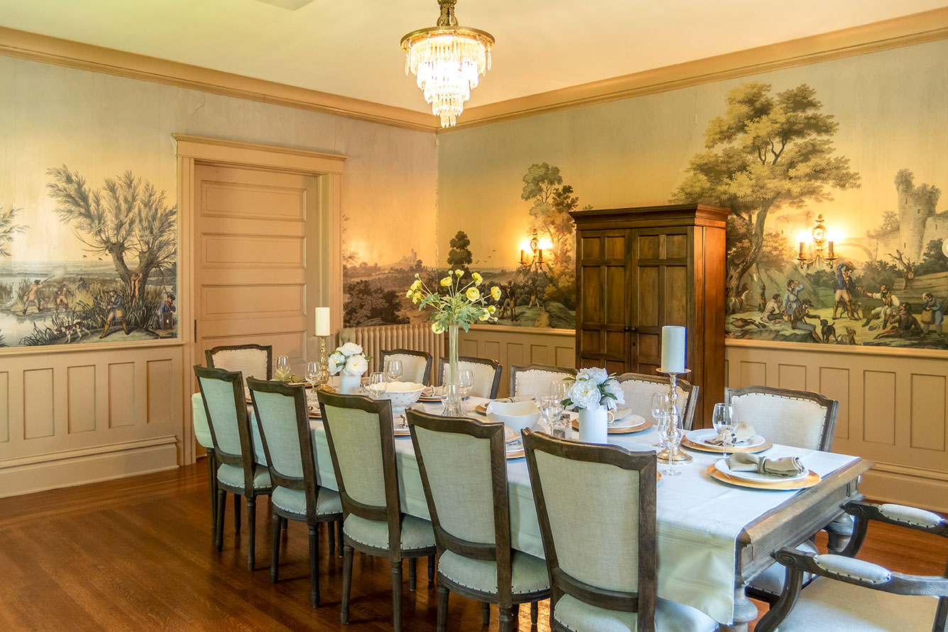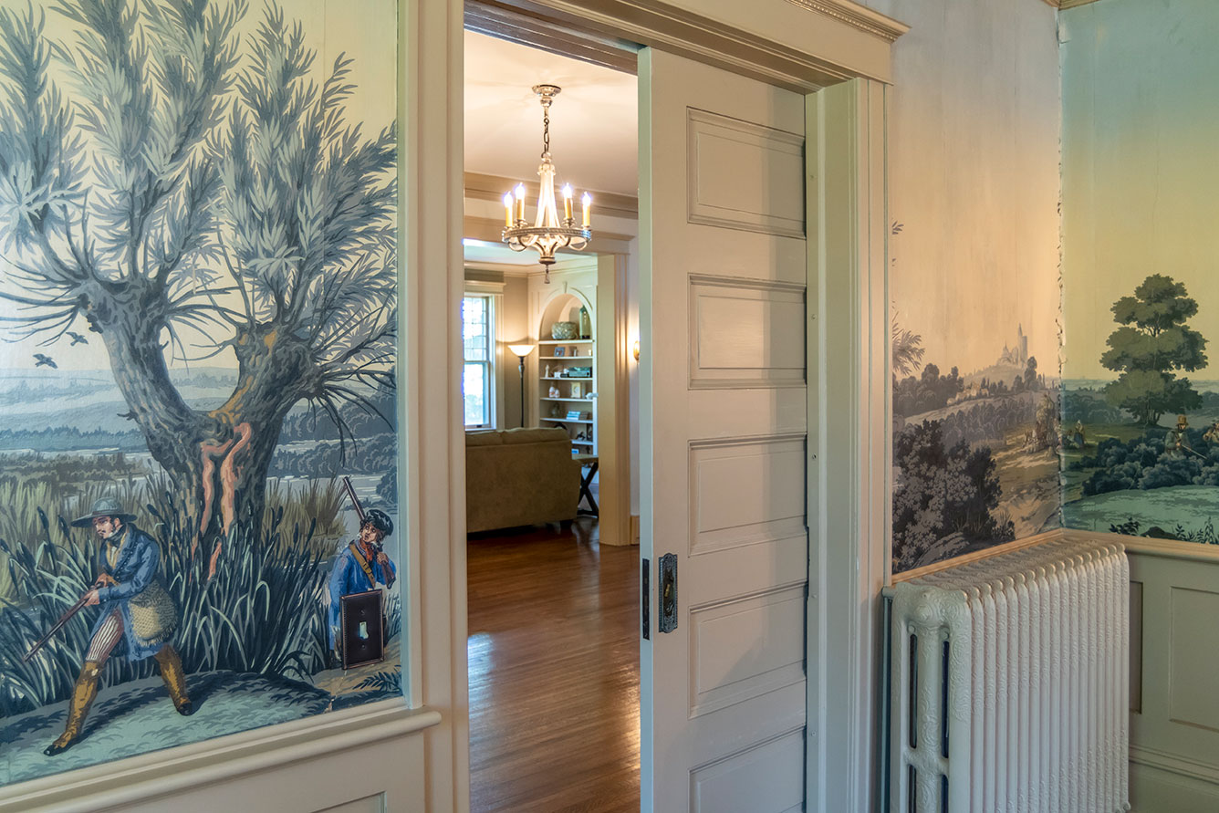 According to personal accounts and the National Register nomination form, the house was remodeled in 1927. The front porch was enclosed, the front door was pushed forward, and a hand-painted (on paper) mural was added to the dining room.