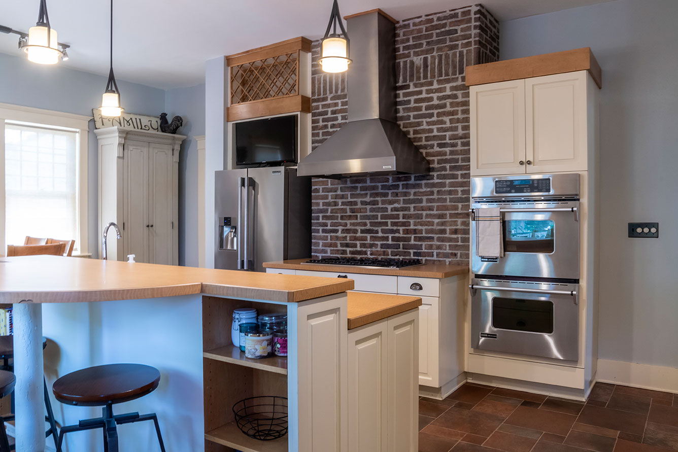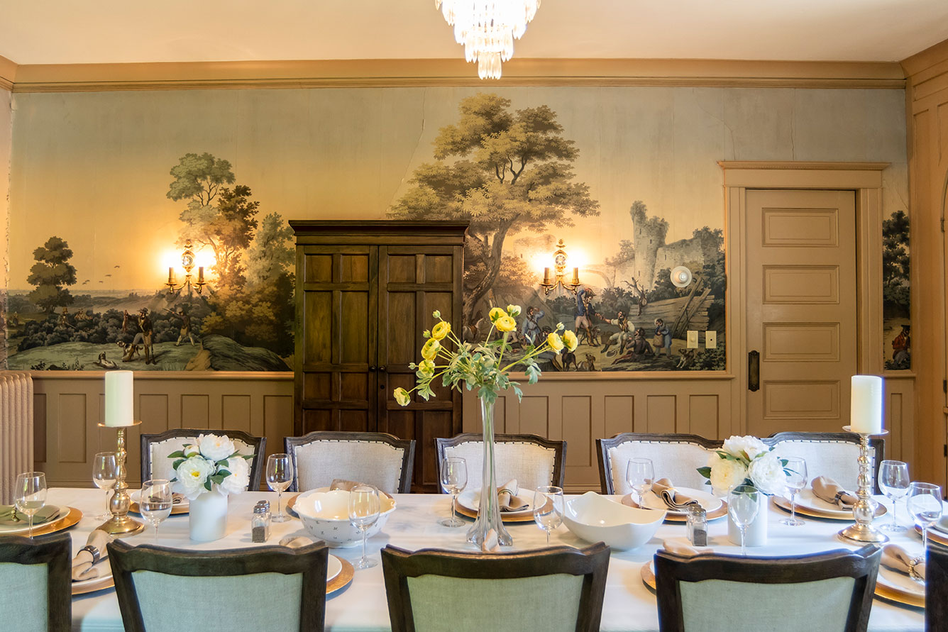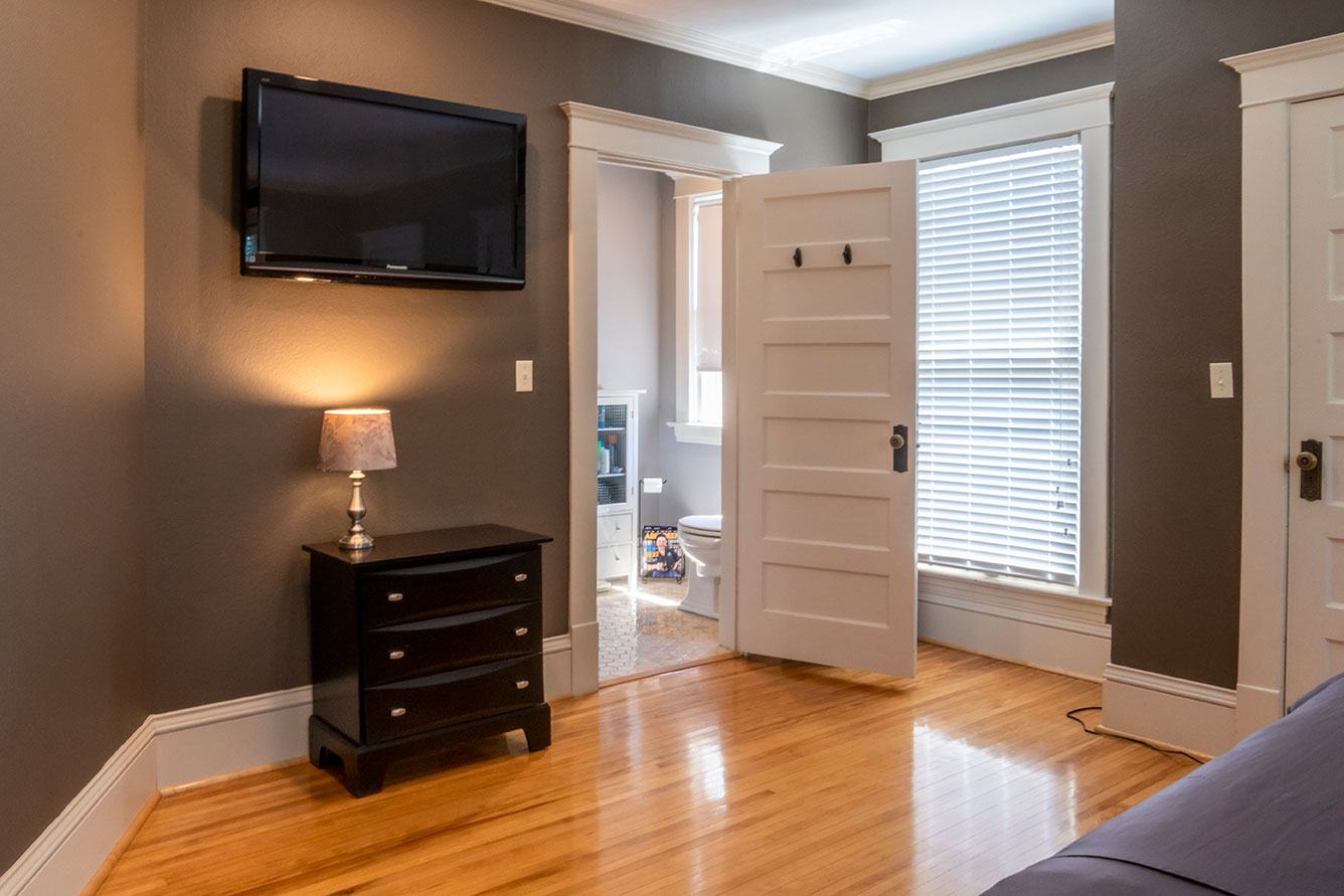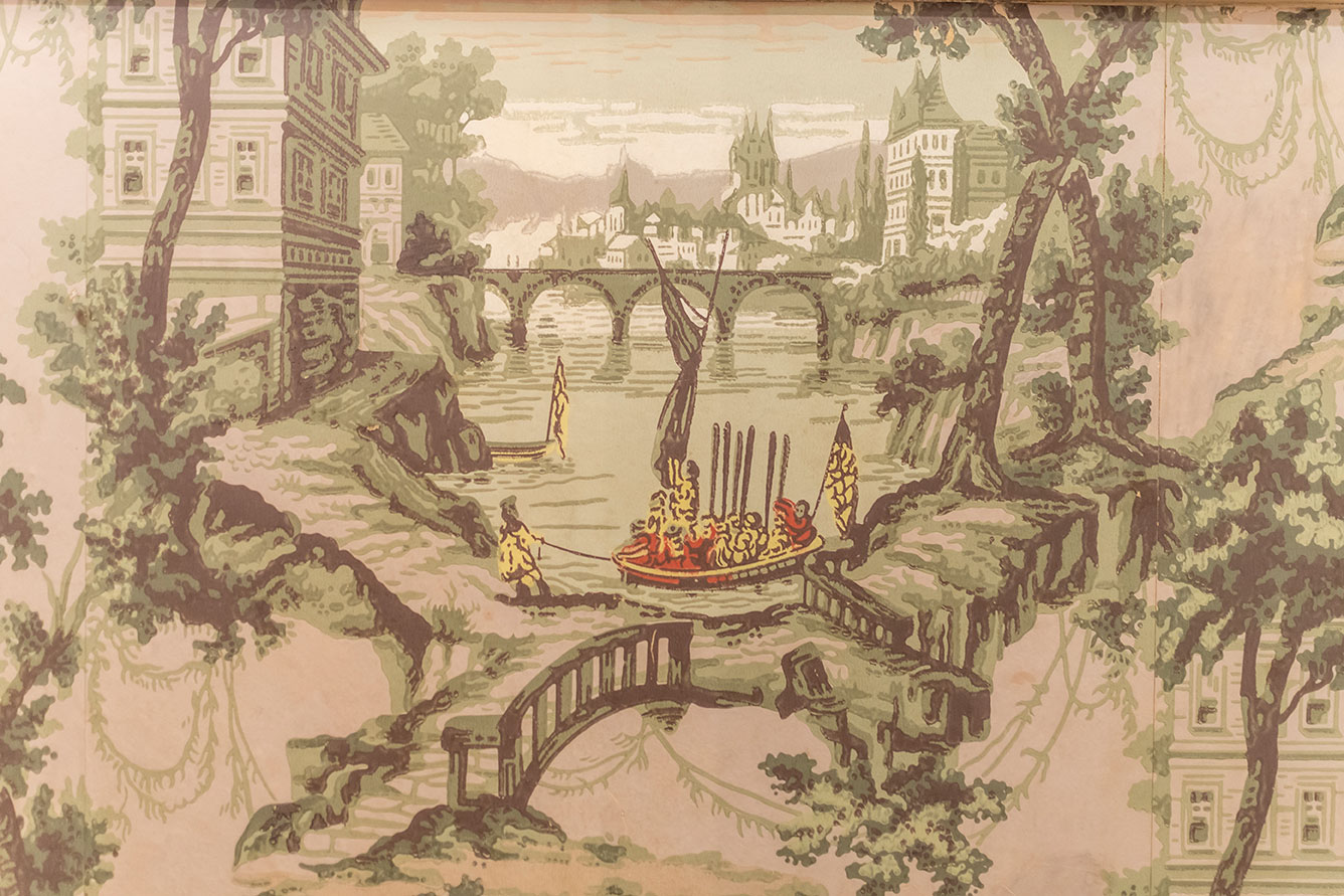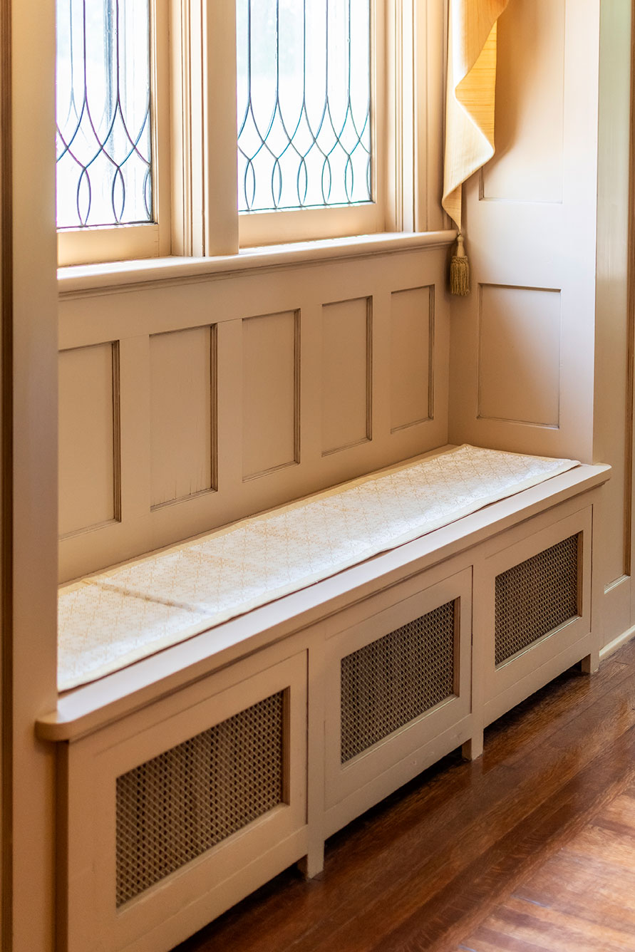 According to personal accounts and the National Register nomination form, the house was remodeled in 1927. The front porch was enclosed, the front door was pushed forward, and a hand-painted (on paper) mural was added to the dining room.