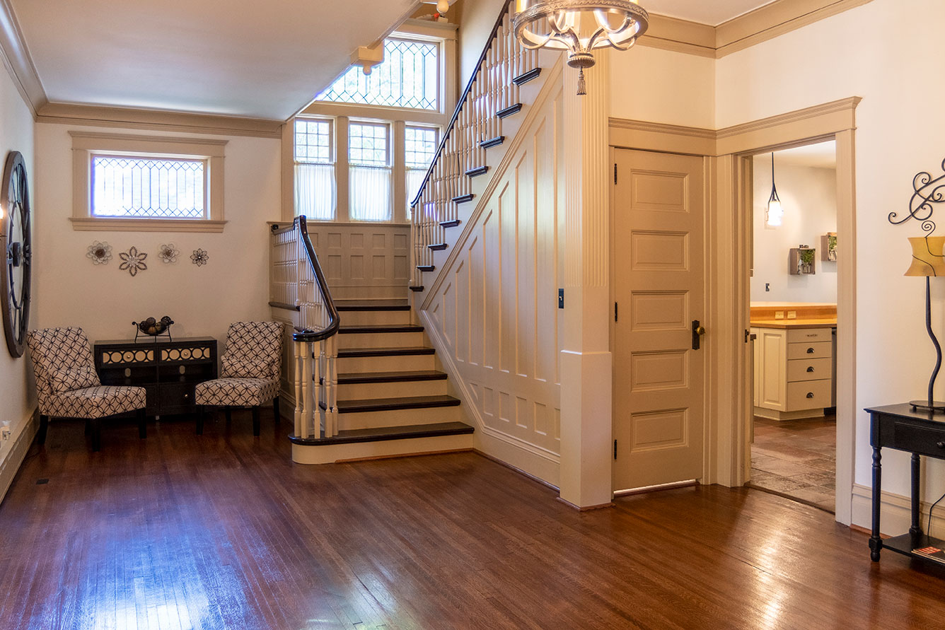 Some accounts say that William was an architect and an engineer. I can find no evidence of that as he only appears to have been involved in the grain and telephone businesses. He is credited with designing the house himself. While the home is spectacular, it does have some odd qualities and incredibly large spaces. The dining room is exceedingly large with relatively small doors. Both the front hall and living room are very large too. The second-floor landing is the size of a living room and reveals a total of 10 doorways leading to the bedrooms, closets, staircases, and a bathroom. But as was mentioned, it would make for a great party house, with room for the sweeping formal dresses worn by women of that era.