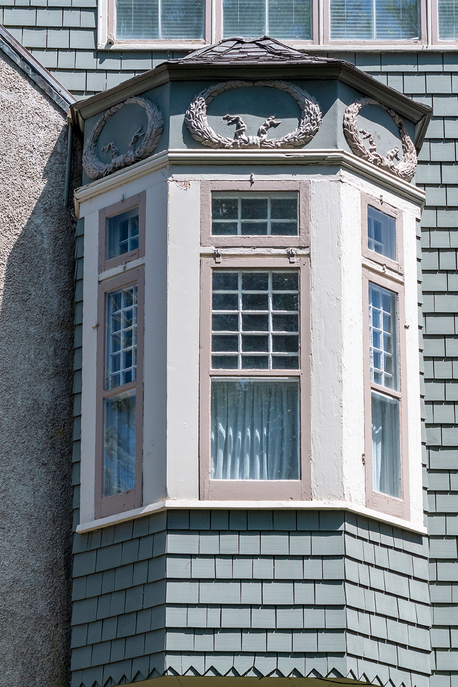 A lot of questions surround this house. When was it built (1901, 1905, or the 1920s)? Is it on the National Register of Historic Places? Why is it so big? A newspaper article from 1904 reports that a mason working on the new home was shot in the leg by a neighbor boy playing with a rifle. The Bickelhaupts moved in in 1905. In 1989, the home received National Registry status. The nomination form says the house is significant in the area of architecture because it is an excellent local example of the Shingle Style. Shingle Style homes were popular from 1880 to 1900 and are characterized by wood shingles covering most of the house. Only the upper floors of the Bickelhaupt house are shingled, the rest is stucco covering bricks. The reason the house is so big is because the Bickelhaupts loved to entertain. There are many accounts in local newspapers, before the house was built, detailing lavish parties by Mrs. Bickelhaupt. And, they had four children.