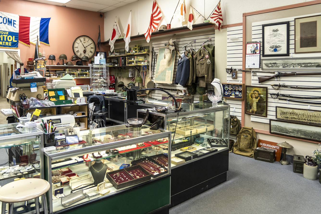 Cheryl Nelson, Andy Heinze, and Dale Fliehs each have their antique specialty at Gold N Gems downtown, which sells jewelry, military memorabilia, coins, and assorted antiques of more than fifty years old. “We’re kind of like three entities under one roof,” Cheryl says.