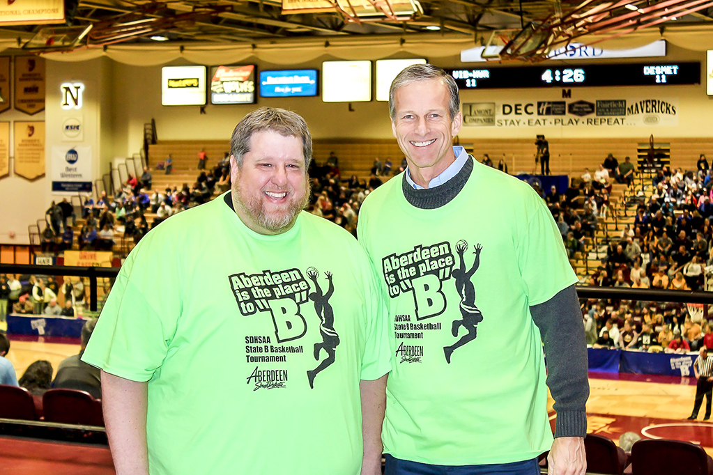 And Gene Brownell seems like the right guy for the job of running a big event for the smaller schools and communities in South Dakota. “I understand how small town people think,” he says. “I saw my first State B tournament with my dad in 1959 in Huron.” And Aberdeen seems to be the right place. Gene adds, “People want to be welcomed and know that we’re happy they are there. Here they can drive up and down Sixth Avenue and see marquees welcoming them.” He notes, “The impact of 6,000 people coming to a town of 28,000 is something we notice.” As Coach Nersheim says, the guests notice.