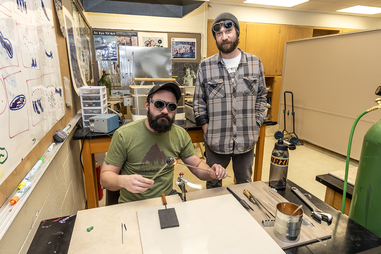 Aaron Johnson (left) and Caleb Crosby operate Switchback Studios, a lampworking studio location on the first floor of the Aberdeen Recreation and Cultural Center.