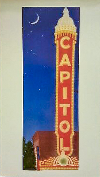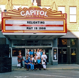 To anyone who has started a project on a budget before, it may not be a shock to learn that the initial $30,000 estimate was not enough to restore the marquee. The final cost of the project ended up being around $100,000 more than that. This did not deter the Questers from reaching their goal. Through countless fundraising events, like selling one of kind prints of the marquee by nationally acclaimed Aberdeen-born artist Mary Gorder Groth, applying for state, federal, and international grants, and receiving $31,000 from community organizations and $18,000 in private donations from Aberdeen citizens, the Questers were able to reach their goal in 1997, just a few years before the deadline. After 71 years of decorating the outside of the theatre, the marquee was removed from the facade of the building in January of 1998, and transported to Maple Grove, Minnesota to be restored by the Pascual Sign Company, who had experience in restoring the Orpheum and State Theatre marquees in the Twin Cities, and came recommended from the League of Historic American Theaters. Later in May of that year, the completed sign was returned home to Aberdeen for a grand celebration on Main Street. Land of Oz Questers member and chair of the core committee, Nancy Aman was declared the “First Lady of Aberdeen” for her efforts in leading the core committee to being successful. Not only was the marquee restored to its former glory, it along with the Capitol Theatre were granted a national landmark status.