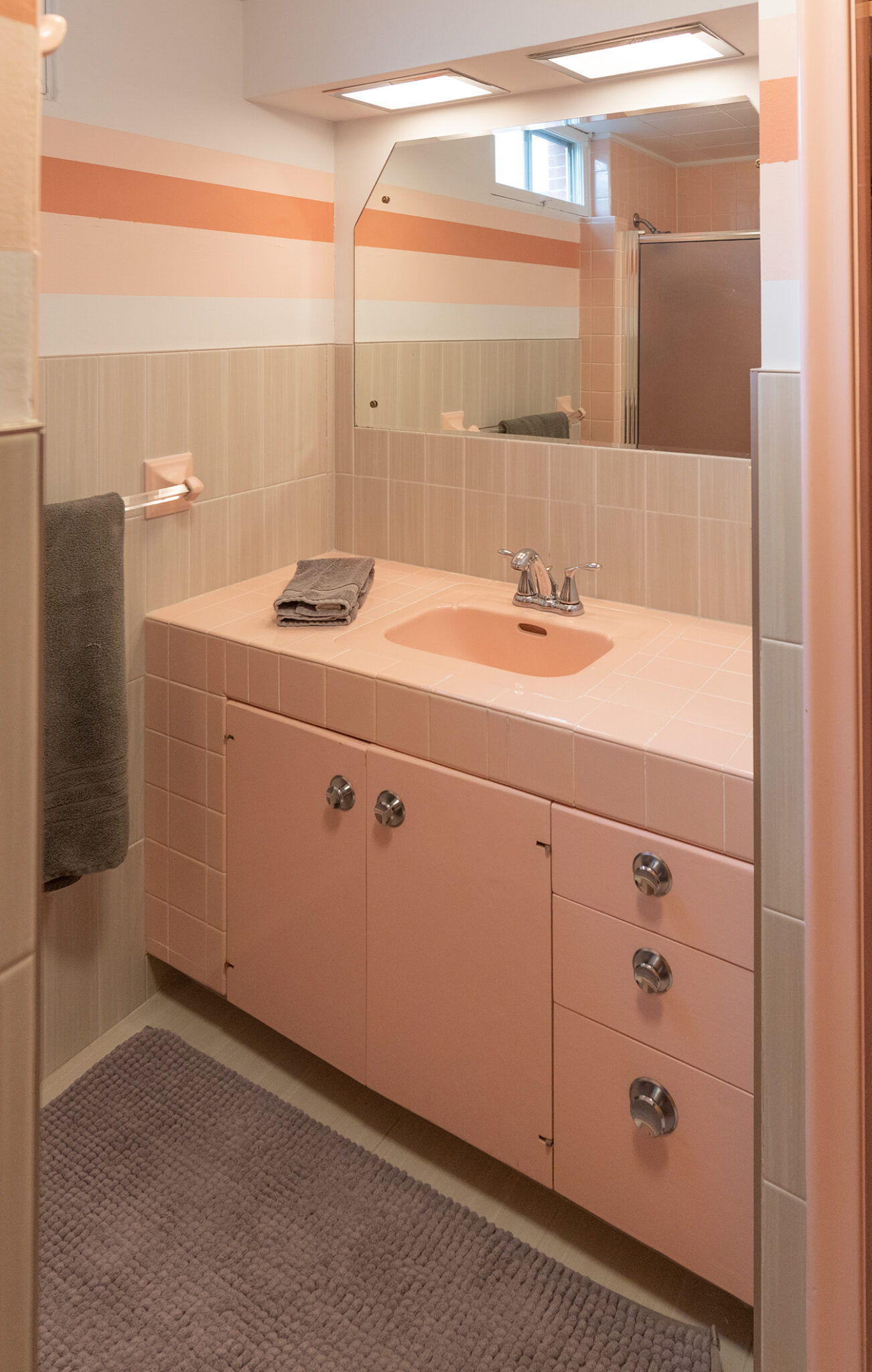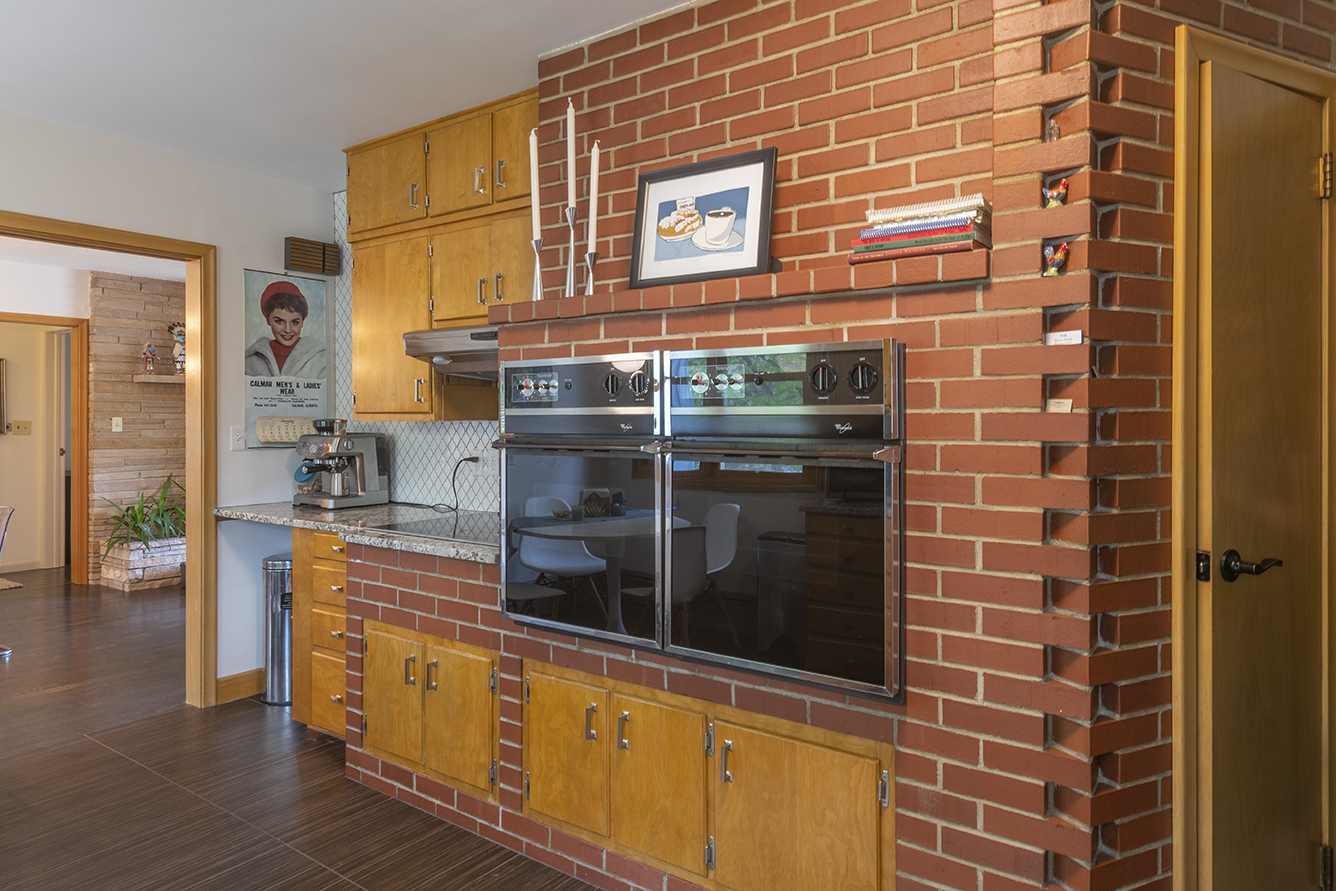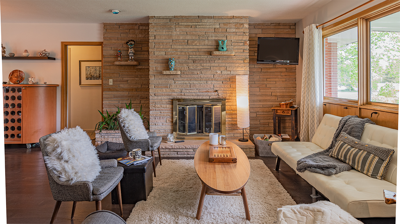 When she was shown this ranch residence on North Jay Street, it spoke to her on so many levels. “The blue and pink bathrooms really sold me,” she explains. Pam says the previous owners of her house took great care to remove truly outdated, worn things (carpet, wallpaper, paint, fixtures, etc.) and replaced them with retro-sensitive items. Many original items were left, fortunately for Pam.