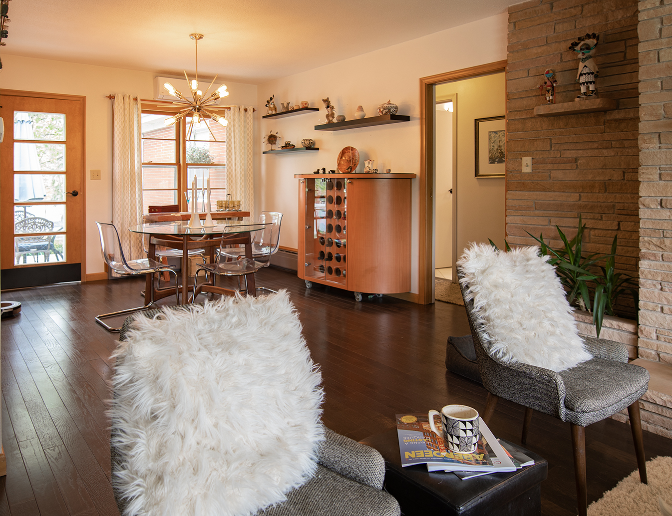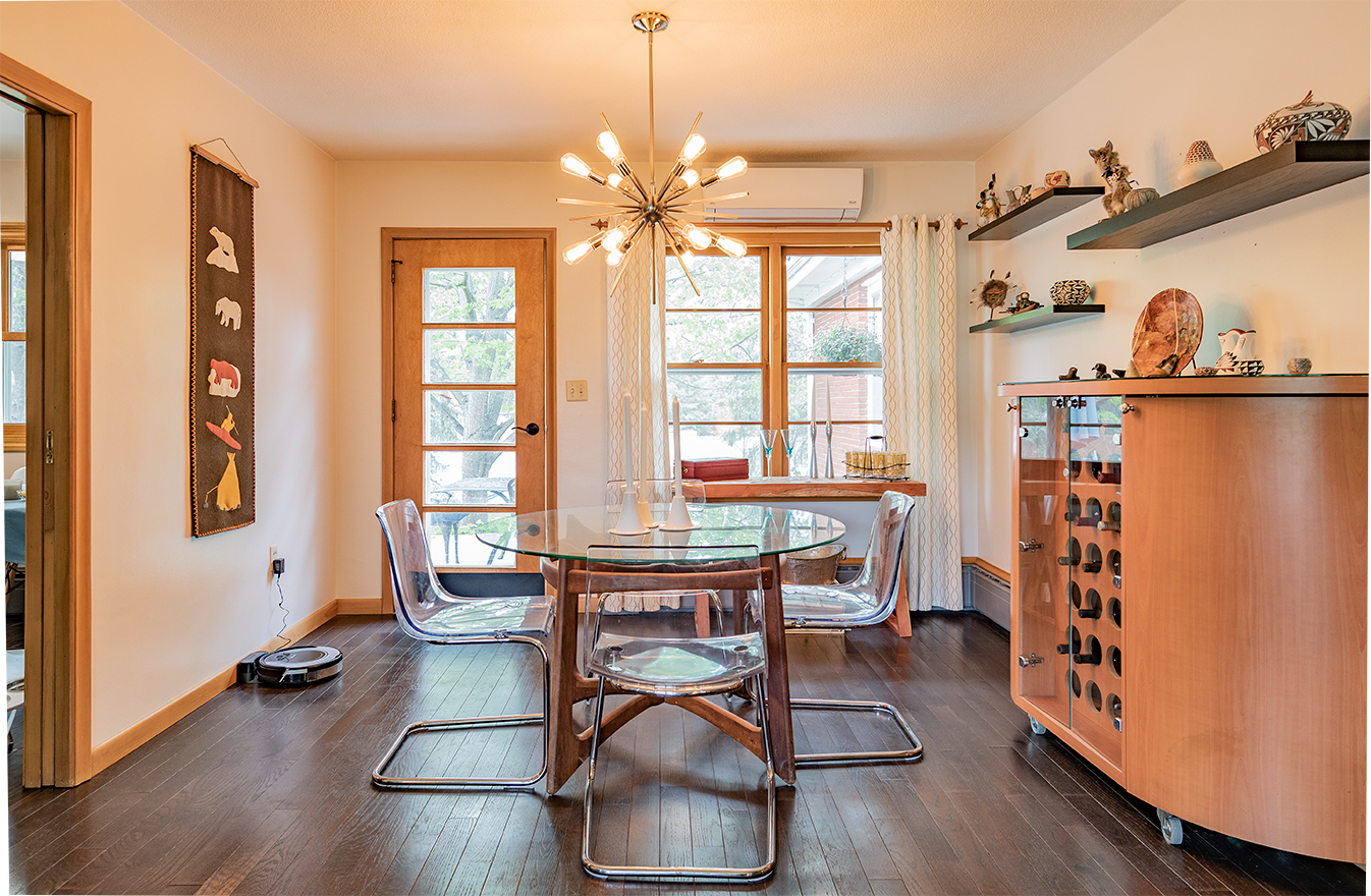 When looking for a house, she says she wanted character. She’s lived in southwest-style homes in New Mexico and a 100-year-old historic house in Maryland. Newly built homes just didn’t resonate with her. She has an affinity for the mid-century modern style (retro 1950s era) and even had a few furniture pieces in that style. She looked at a couple of houses in the Eisenhower Circle neighborhood, but many were too large and needed updating. She really wanted move-in ready.