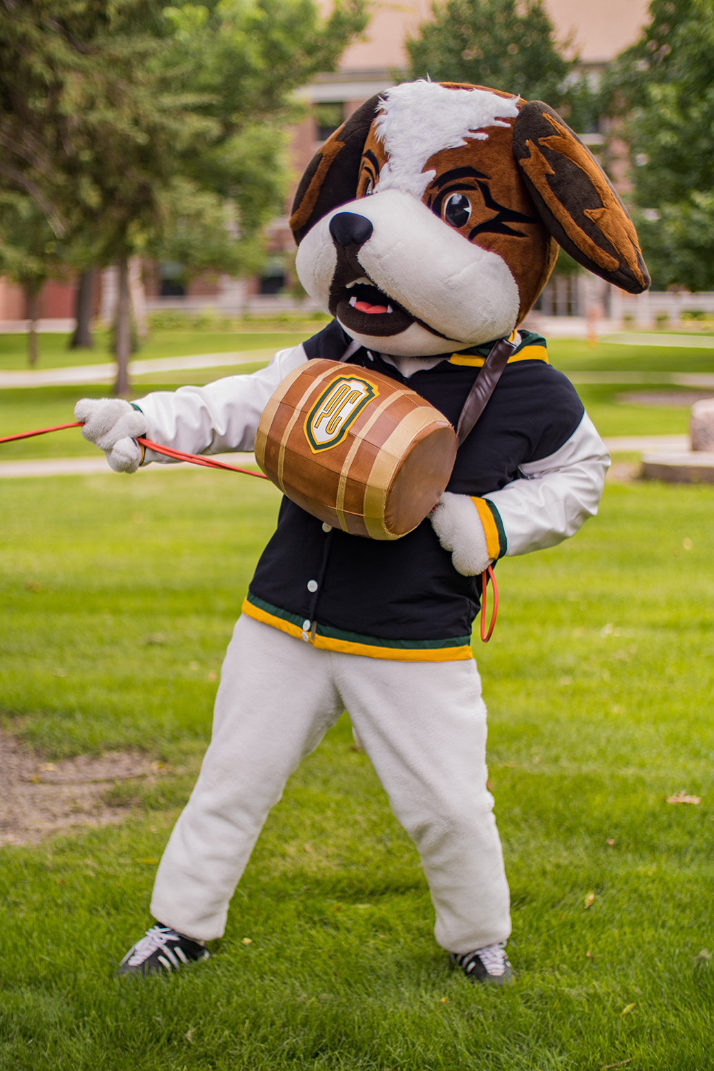 A couple of years after welcoming Spirit, PC also added a costumed Saint Bernard named Bernie, short for Bernard. The person inside the Bernie suit is either a PC staff member or a student filling the role as a work-study position. At many events the mascots, Bernie and Spirit, work together to build school camaraderie. // –Jenny Roth