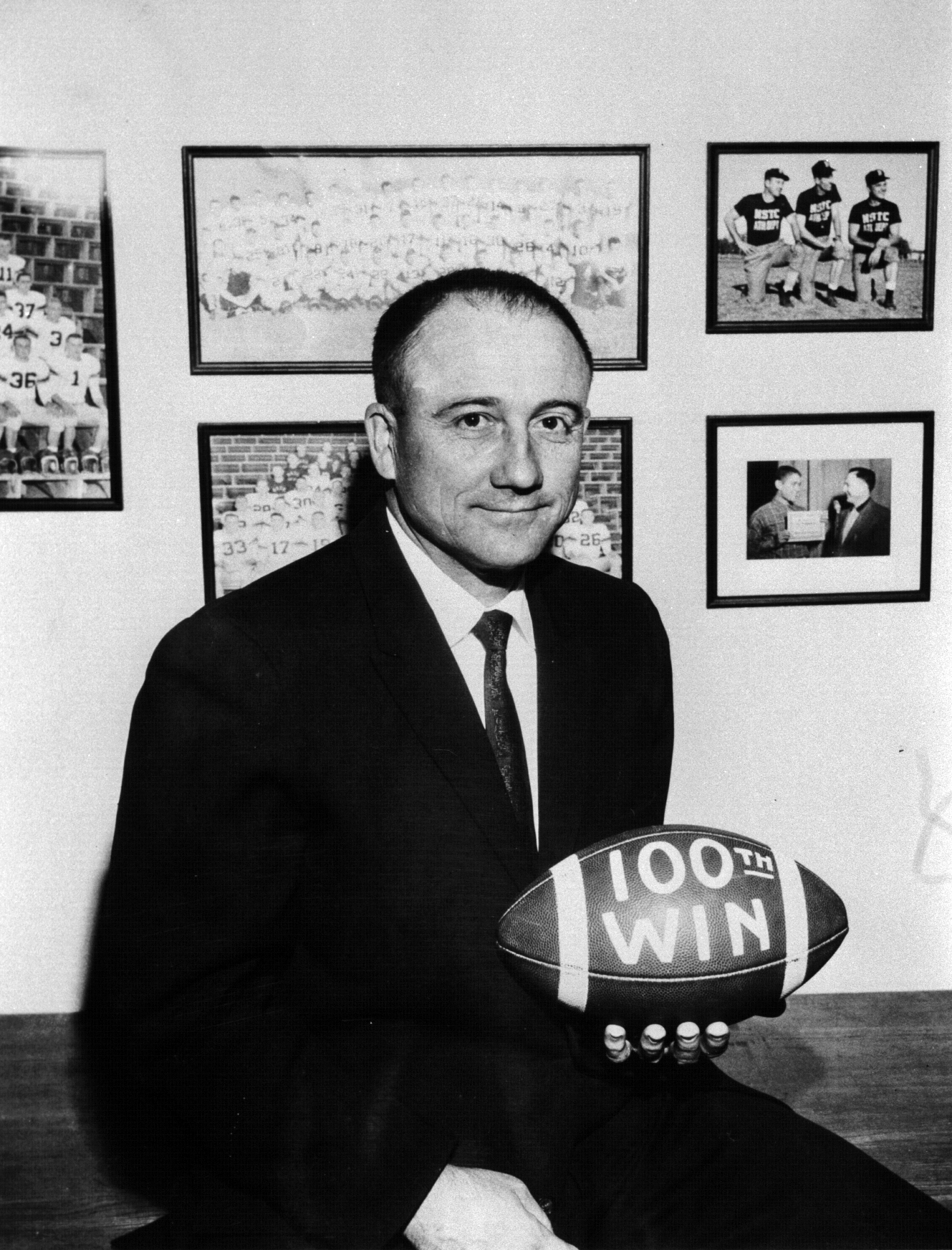 1938 USD grad. NSU coach and/or athletic director, 1946-1986. Initially coached football, basketball, track, tennis, and golf with no assistants. Winningest football coach in NSU history: 146-42-4, four perfect seasons, and 15 SDIC titles. Former president of the NAIA. Member of U.S. Olympic Committee, 1975-84.