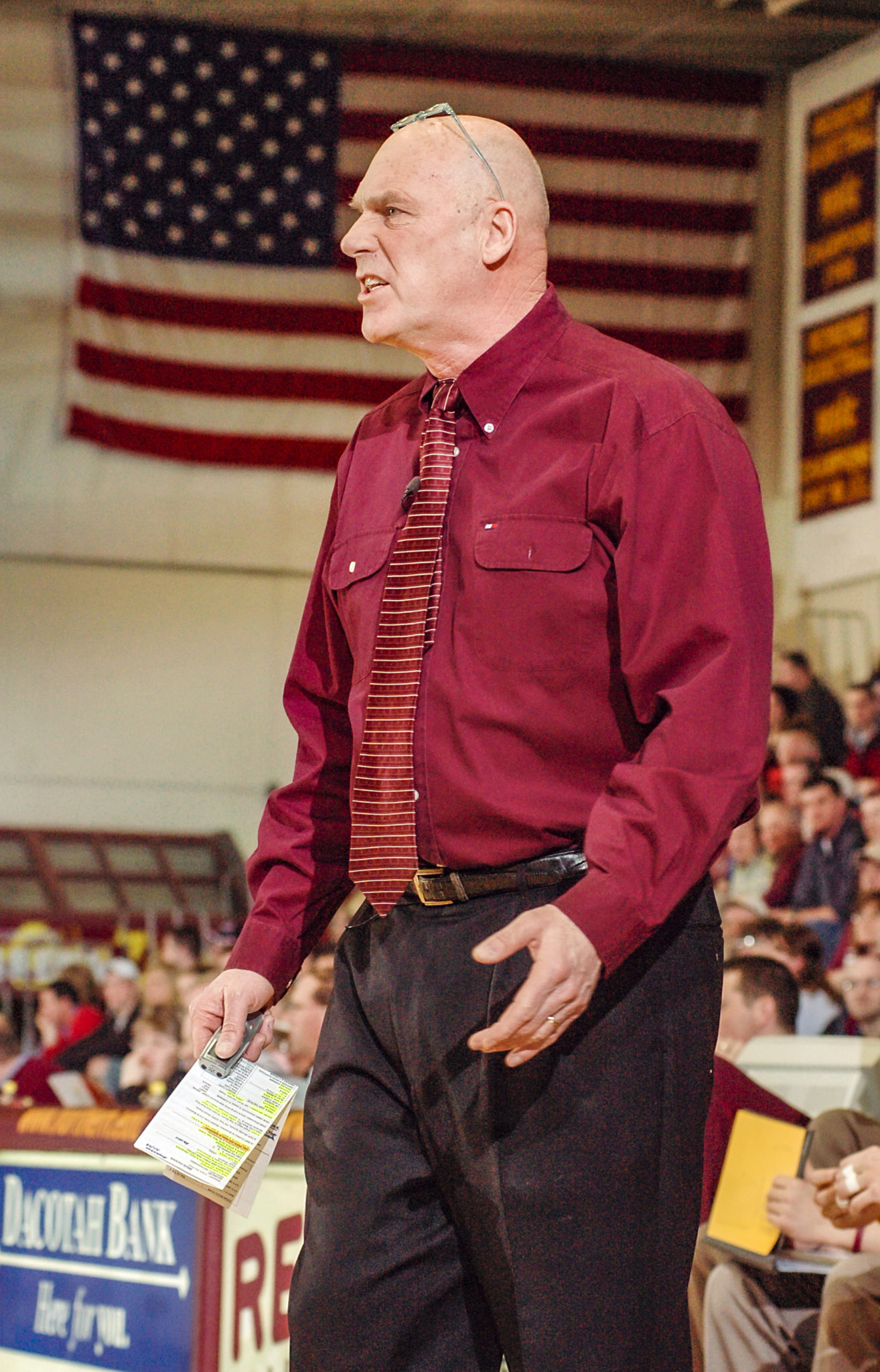 1973 Aberdeen Central grad. 1977 NSU grad. Coached NSU women’s team to a 44-10 record in two seasons. Followed his college coach, Bob Wachs, as men’s basketball coach, 1985-1999: career record 305-129, six conference titles, five NAIA national tournament appearances, and runner-up in 1994 and 1995. In NCAA Division II, earned national tournament berths in his first four seasons, including Elite Eight in 1997-98. National coach of the year, conference coach of year five times. Coached 27 all-conference players, five NAIA All-Americans, one NCAA II First-Team All-American, and eight Academic All-Americans. Athletic director for 13 years. Also taught and worked as an admissions counselor. Coached Roncalli basketball 1981-1983, with a 27-13 record.