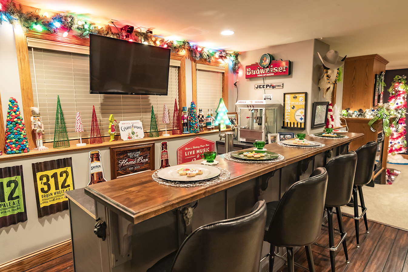 Kristen, the general manager of Mavericks and the DEC, and Eric, vice president of franchise sales and development at My Place Hotels, enjoy the holidays and spending time with their blended family and friends. One of the highlights of their holiday season is decorating their home together. “It’s quite the event,” said Kristen. The couple uses five Christmas trees throughout their home, the biggest standing at 12 feet tall. Countless strings of lights, baubles, Kristen’s impressive Nutcracker collection, and tons of personal Christmas memories tied to each item fill each themed room throughout their home.