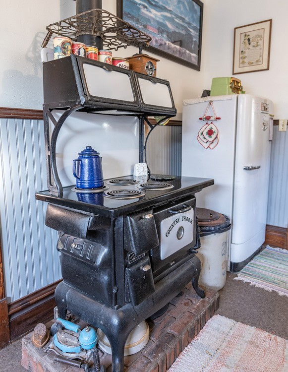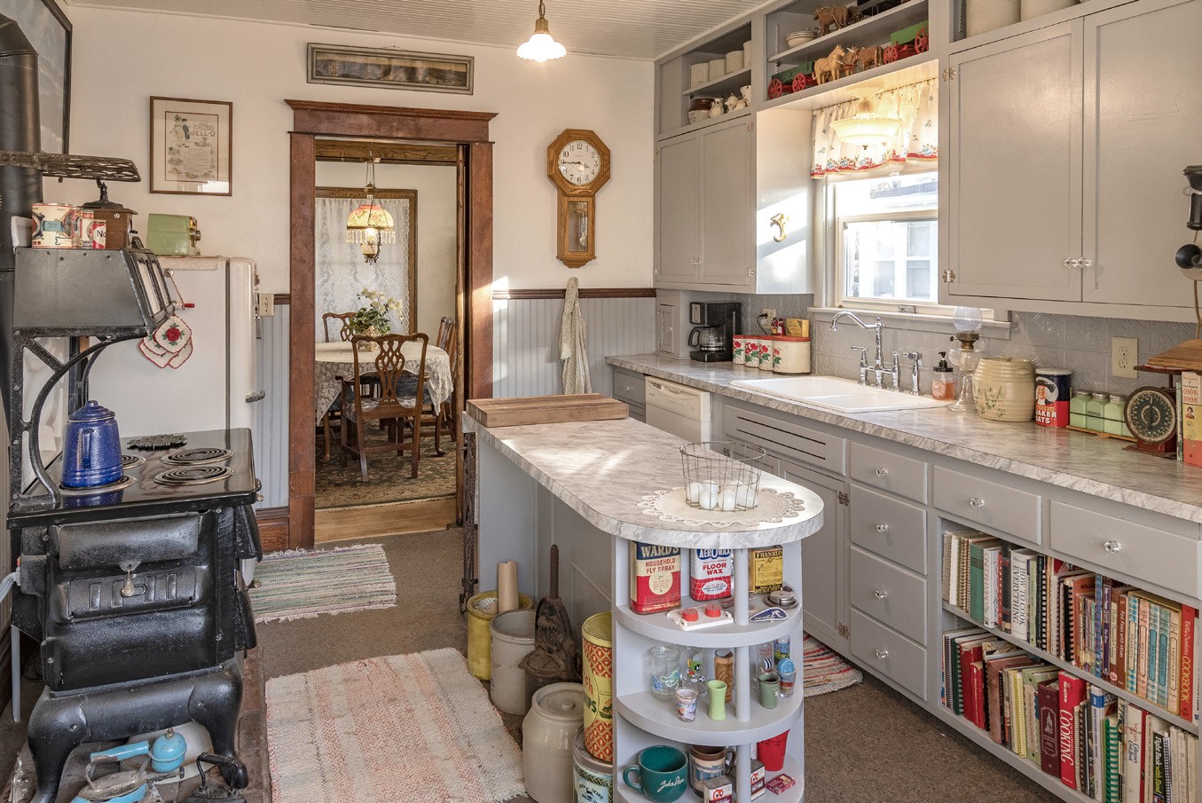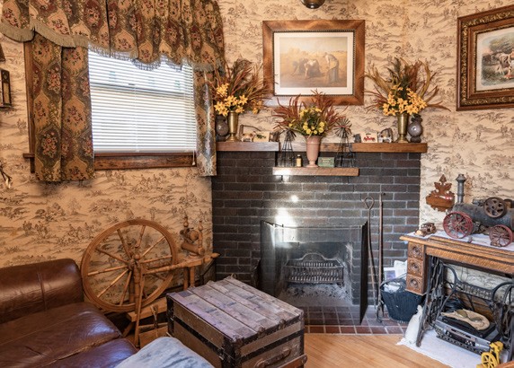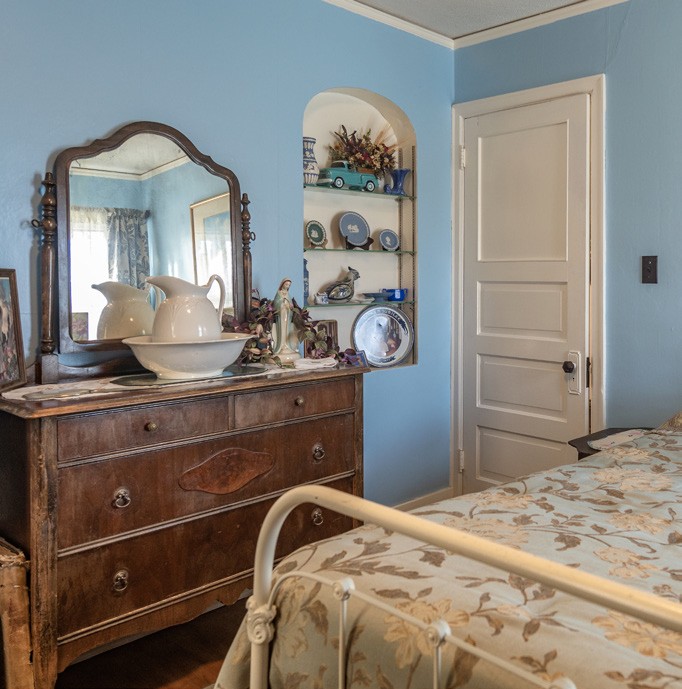 The first thing that happens when you step into his living room is your jaw drops. Then, confusion overcomes you. How? Why does a thirty-something bachelor live like this? The confusion stems from the fact that every square foot of the house is decorated with furniture and items from the home’s early time period. No, he didn’t find it like this. This is his collection of mostly family heirlooms, auction items, flea market finds, and a couple of reproductions.