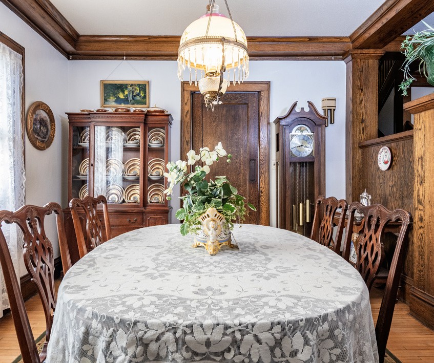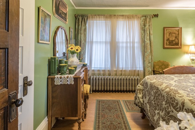 No detail has been overlooked. Furnishing the rooms is probably the easy part compared to what he’s done to conserve the 1914 Craftsman home located on South Kline Street. When asked if he had to do much, Jamin replied, “Yes, both cosmetically as well as mechanically. Carpets and wallpaper came out, floors were waxed or refinished, cast iron plumbing that was crumbling was replaced, windows were re-glazed, grading happened around the house for better drainage, landscaping, and 28 gallons of paint went on the outside. Not one room looks like it did when I bought it, except the main floor toilet.”