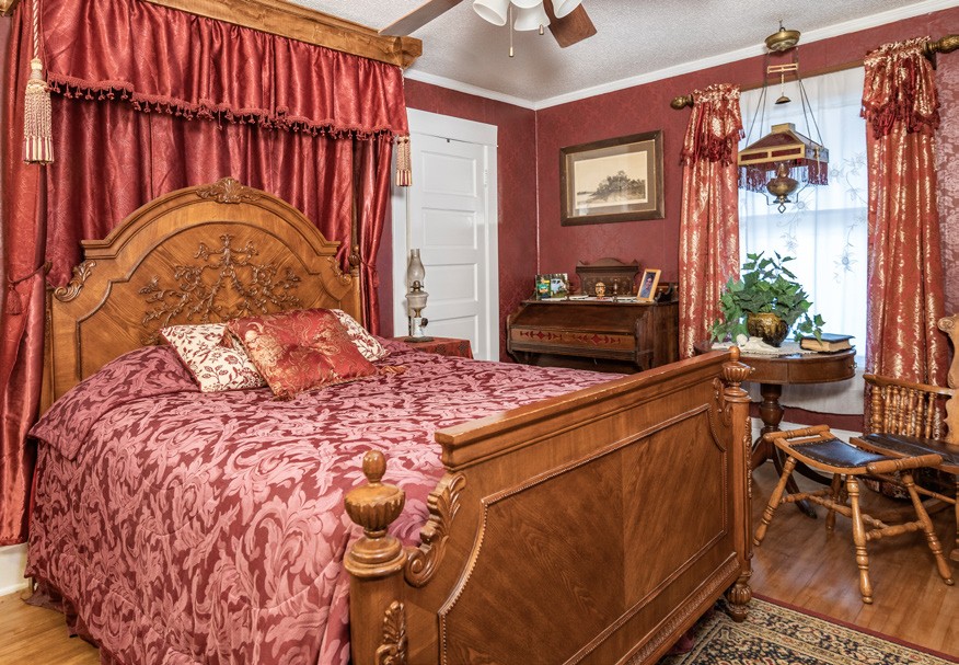 Jamin bought the two-story house in 2017. He said he was looking for a project. He certainly got one. Each of the bedrooms upstairs is completely unique, featuring a dominant color, wall art, collections of knick-knacks, fabrics, drapery, and period furniture. Everything is meticulously placed, arranged, and displayed with an eye for detail, not unlike a Hollywood set decorator. He also enjoys decorating for the holidays and seasons, with Christmas being his favorite.