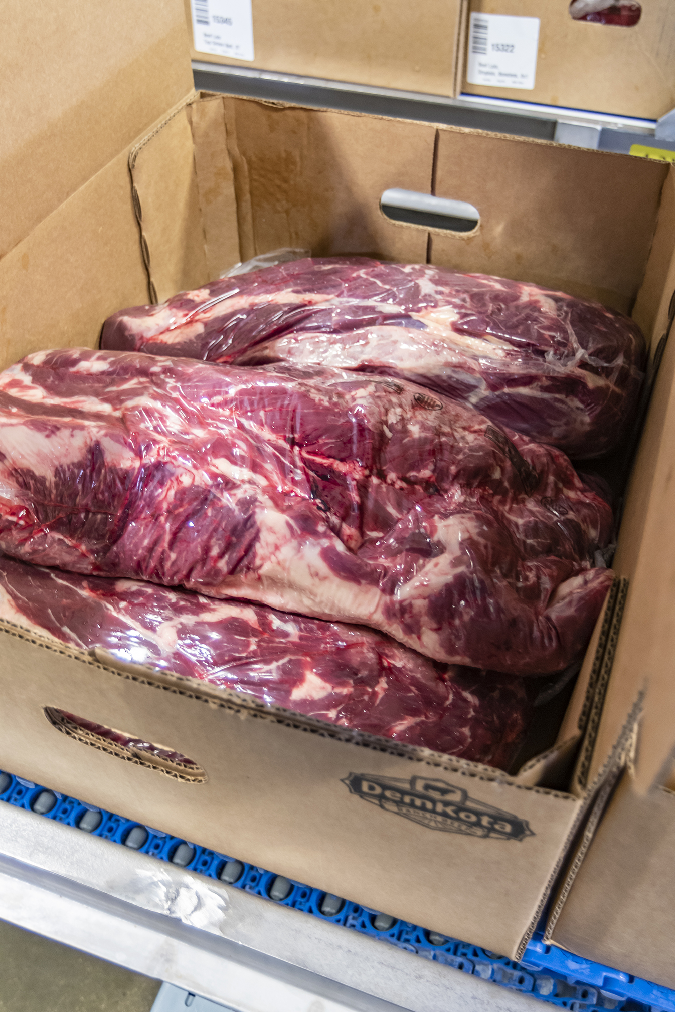 Walking through the plant, Adam pointed out the characteristics of a ribeye that let you know by just a glance that it’s an exceptional product. His voice lit up when explaining the quality of beef that comes through DemKota. As a girl raised by cattle farmers, I’ve had a front-row seat to everything local producers put into raising their animals, so I admit, I felt a lot of pride here too.
