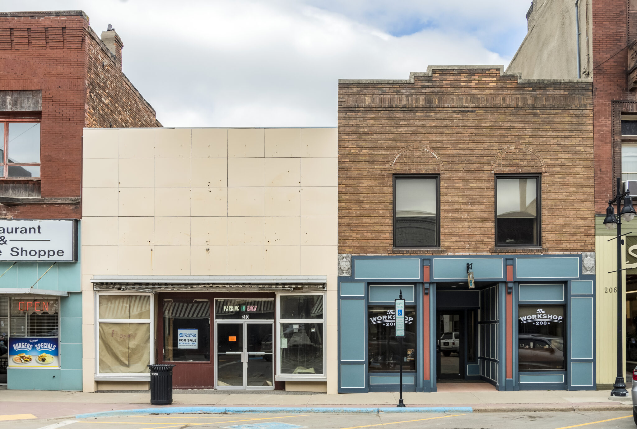 - This is a composite image made from three separate photos from the Brown County Assessors office. These pictures were all taken in the mid-to-late 1950s. The only identifying attribute to either of the two is the curved recess in the second-floor brickwork on the 210 Linpark building. The brick has been completely stuccoed over, and vitrolite glass now adorns the first floor. 208 (Mister’s) is completely unrecognizable.