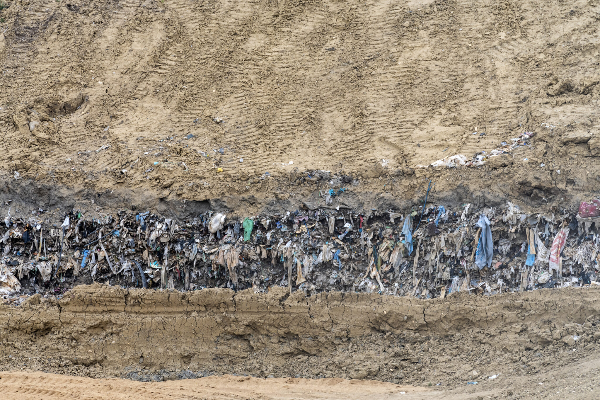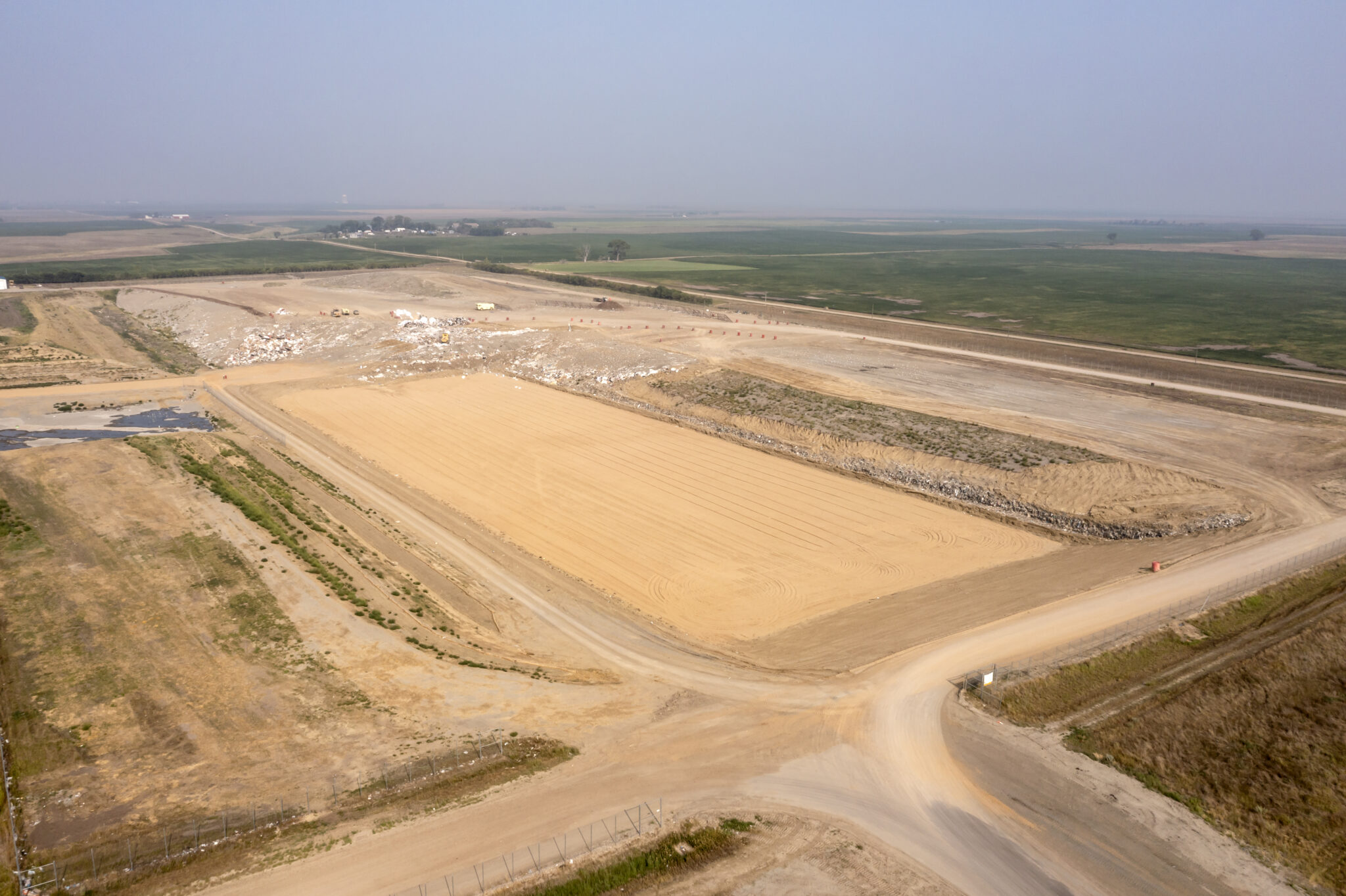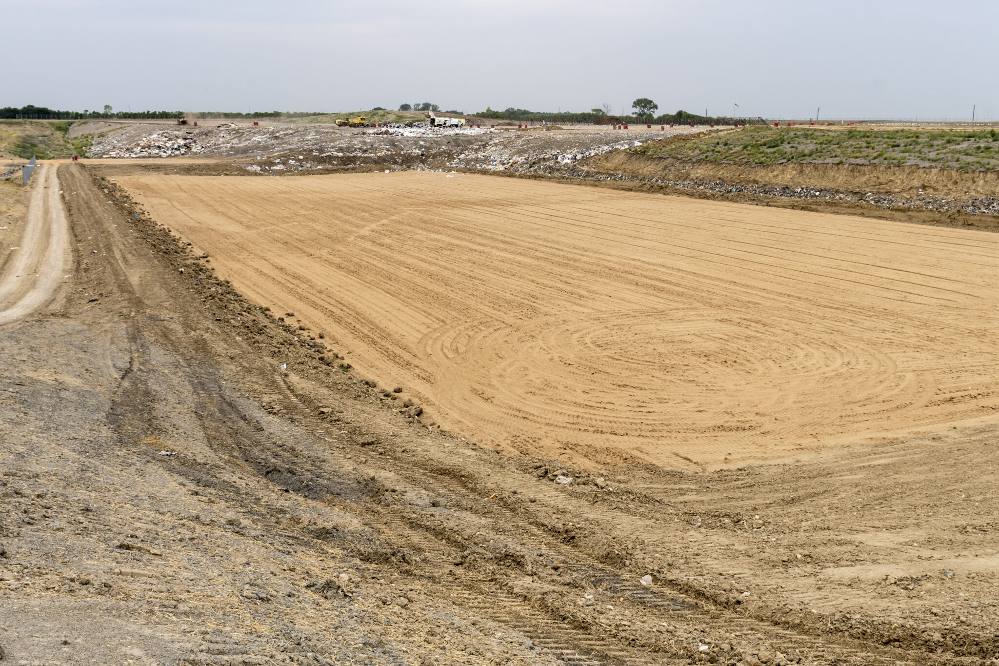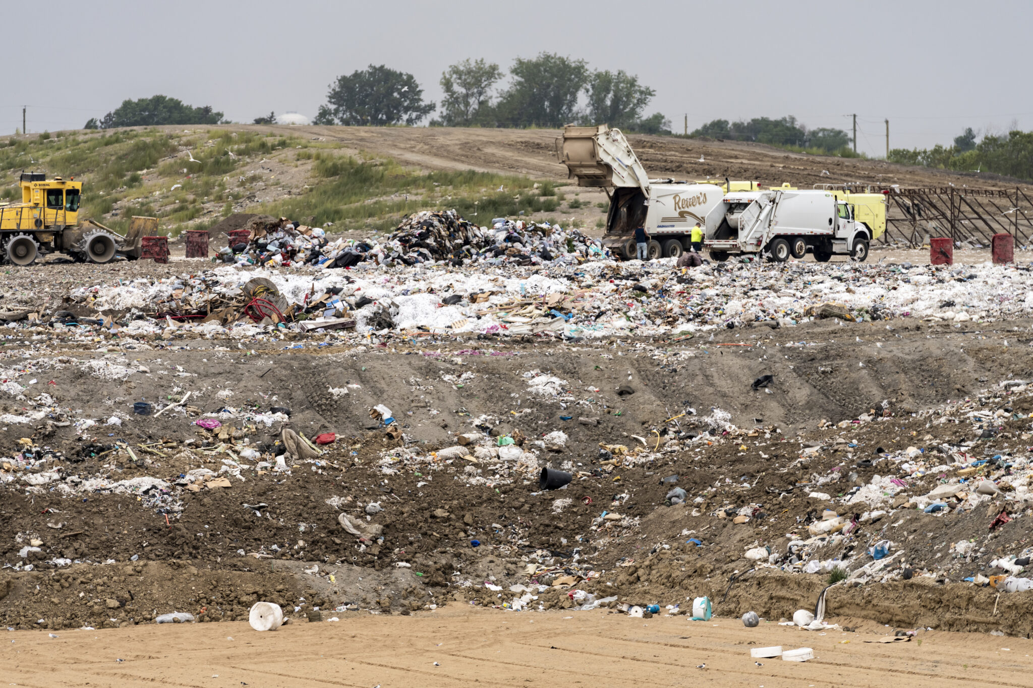 A key goal of landfill design is to prevent water contaminated by trash and leachate—landfill lingo for liquids produced by trash—from reaching groundwater. The base of Cell 4 has a two-foot clay liner topped with one foot of sand, which is sloped to direct drainage to a pump that sends it to the landfill’s waste pond. Mike adds that even with the efforts to ensure leachate does not penetrate the base, they regularly test the groundwater for contamination. They also check for methane, another byproduct of trash decomposition and a potent greenhouse gas.