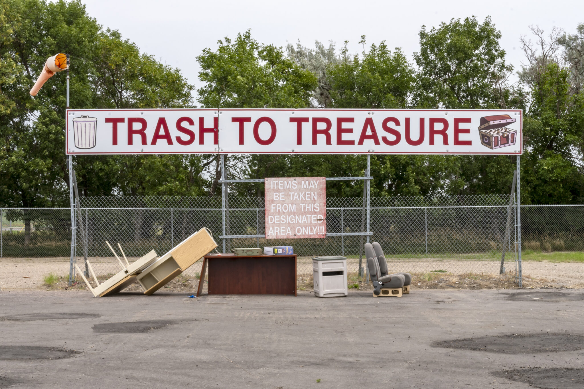 Mike also has fun on the job. It comes as no surprise that people throw away interesting things, and many spark Mike’s creativity. Landfill users are amused by the life-size dioramas he’s created. At the entrance, visitors are greeted by a 25-foot boat christened the “S.S. Minnow” (of Gilligan’s Island fame). Next to the scale house is a lounge scene made of a large feed tank, stools, and an abandoned bar sign—which, maintaining the sitcom theme, says “Cheers”. As he explains, “I like to make things a little unique.” Fortunately, he hasn’t matched the 1914 finding in an Aberdeen dump of a box containing four human heads. They belonged to a doctor who had obtained them for dissection, but someone threw the heads away by mistake.