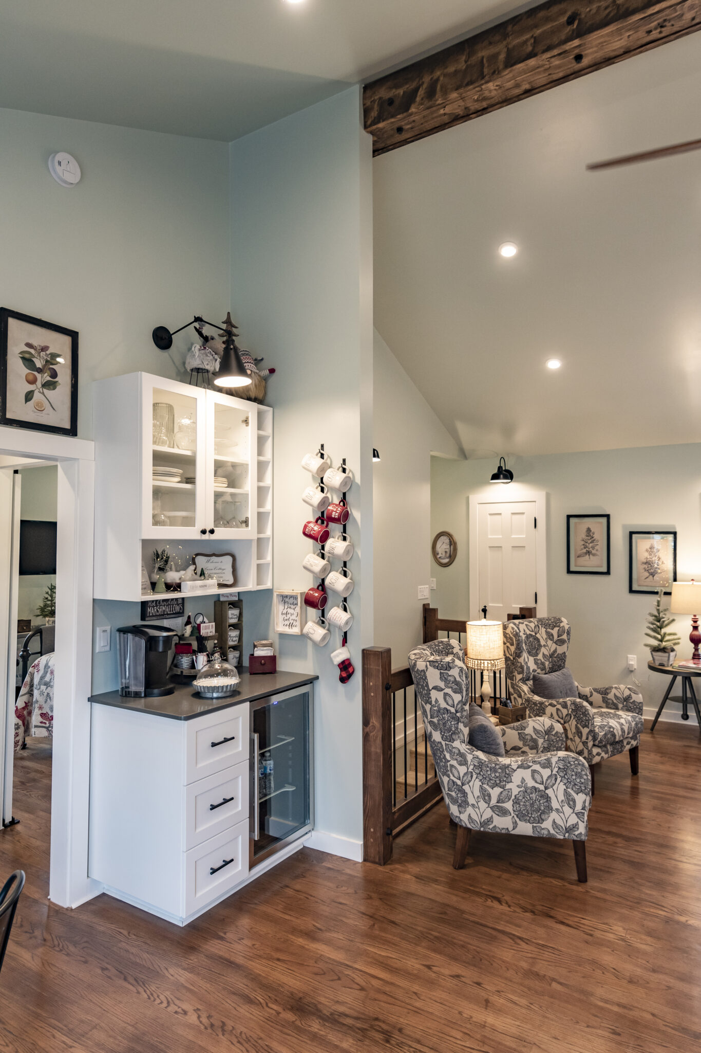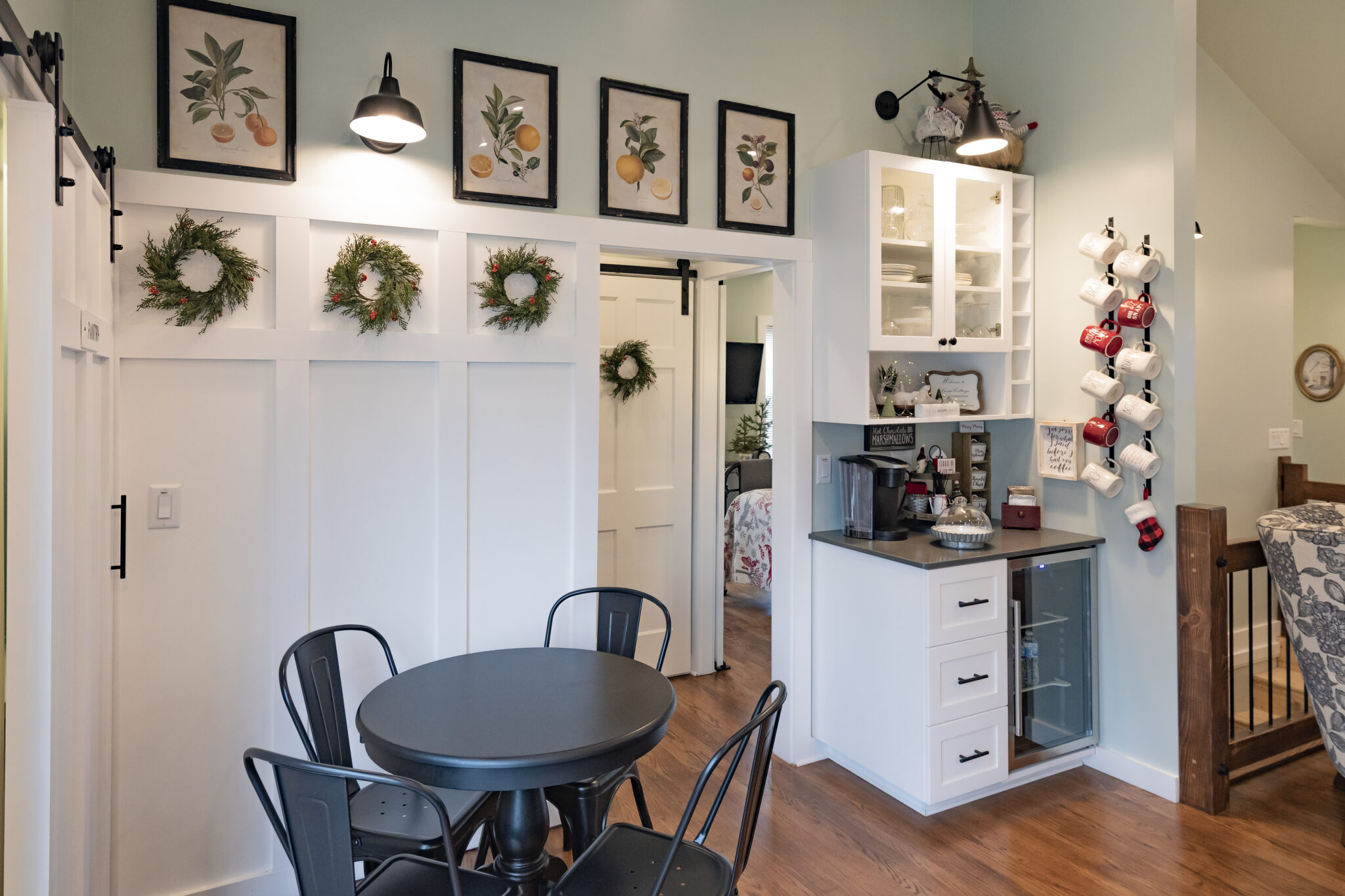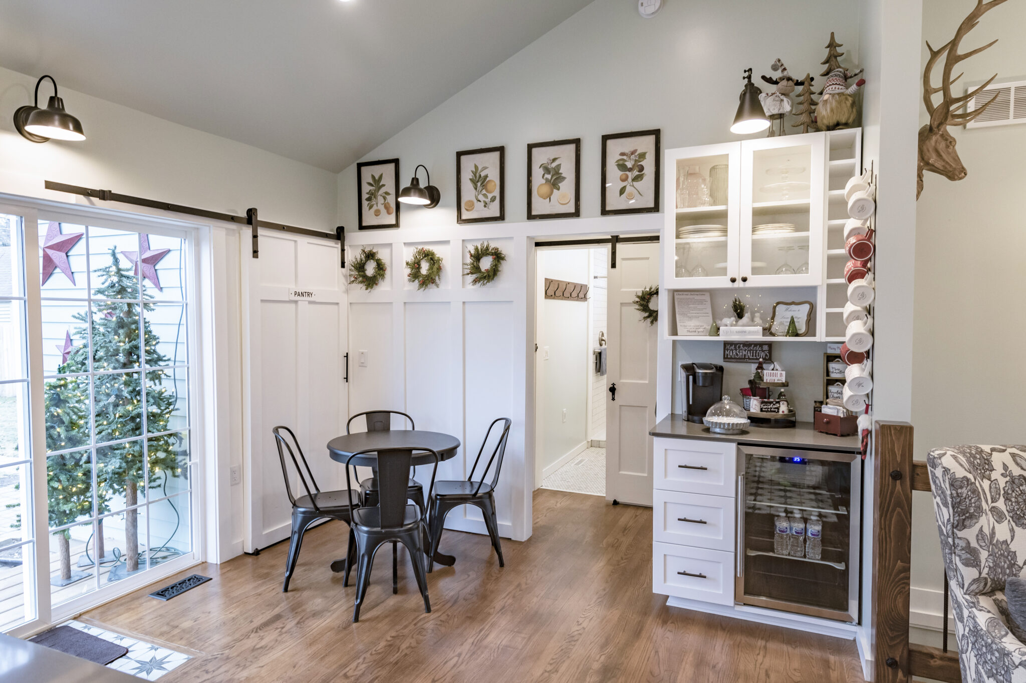 Attention to detail can be seen in the renovation all throughout the house, and Leslie continues to decorate the house seasonally. “I like the guests to be as comfortable as possible. We try to make it feel like their home away from home. Christmas decorating is the most fun. Every room gets something, even the coat closet! It is a joy to be a part of making memories in people’s lives. They come to Lusso Cottage and meet with family they have not seen, reunions, weddings, showers, and vacations as they travel through the United States. Some we only talk to online and some we have met face to face. Everyone has been wonderful, and we have been so happy with our decision to create this space for them,” Leslie said. //