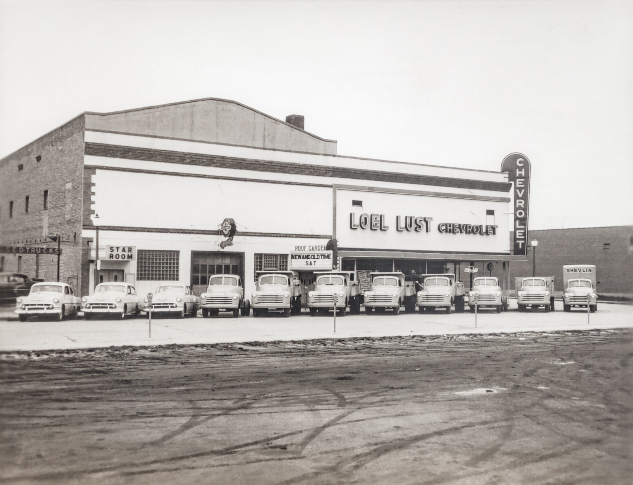 Buying a dealership in the Great Depression was a bold move, and in a 1946 newspaper story, Loel said 1938 (his first full year as owner) was second only to 1932 as the “roughest” year in the auto industry. The business, as was true for many dealerships in early Aberdeen, was first located downtown in what is now the Wells Fargo building at First Street and Second Avenue Northwest. Loel bought the business in partnership with GM and named it Quality Chevrolet Co. In 1942, he bought out GM and renamed it Loel Lust Chevrolet Co.