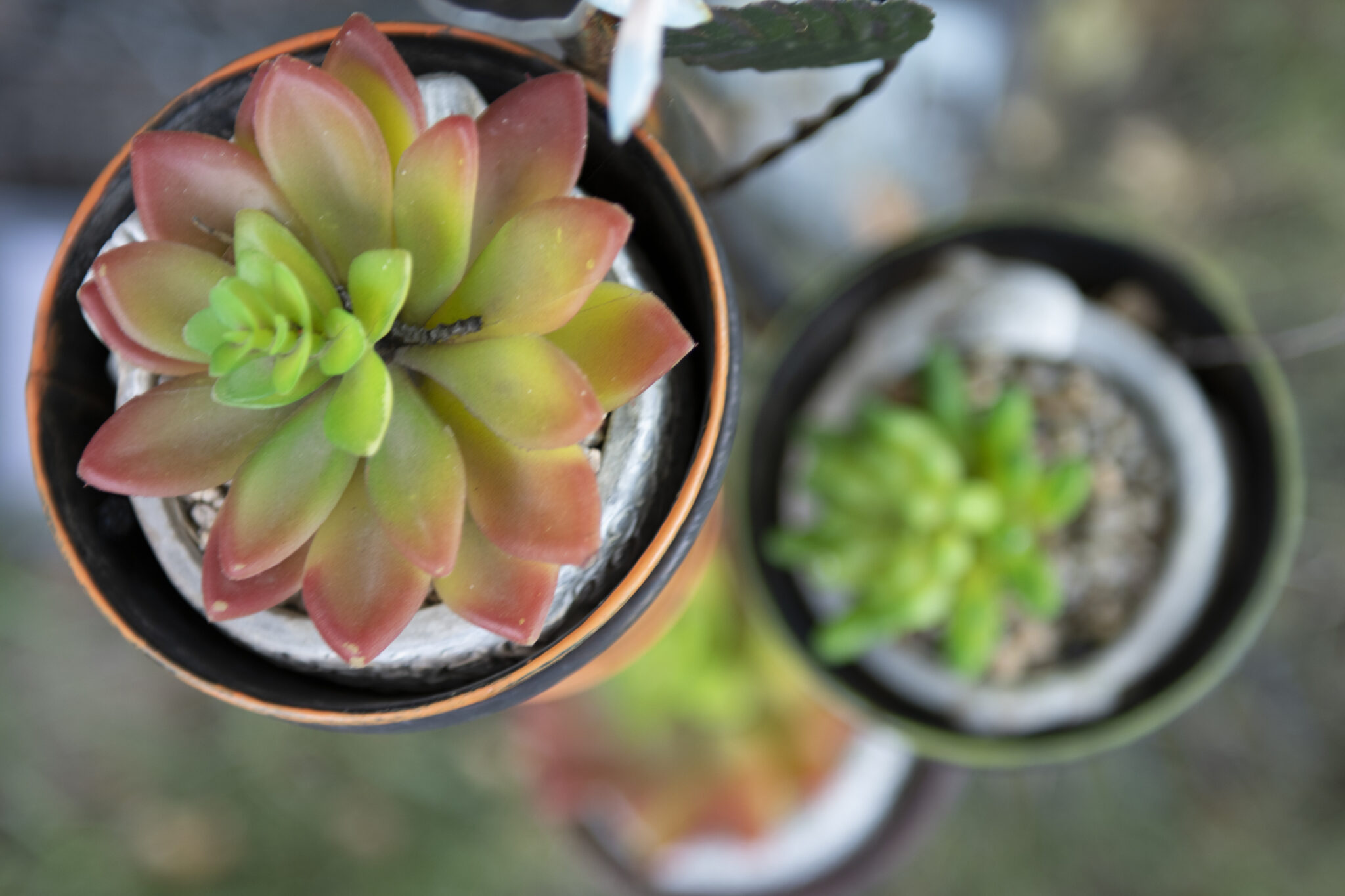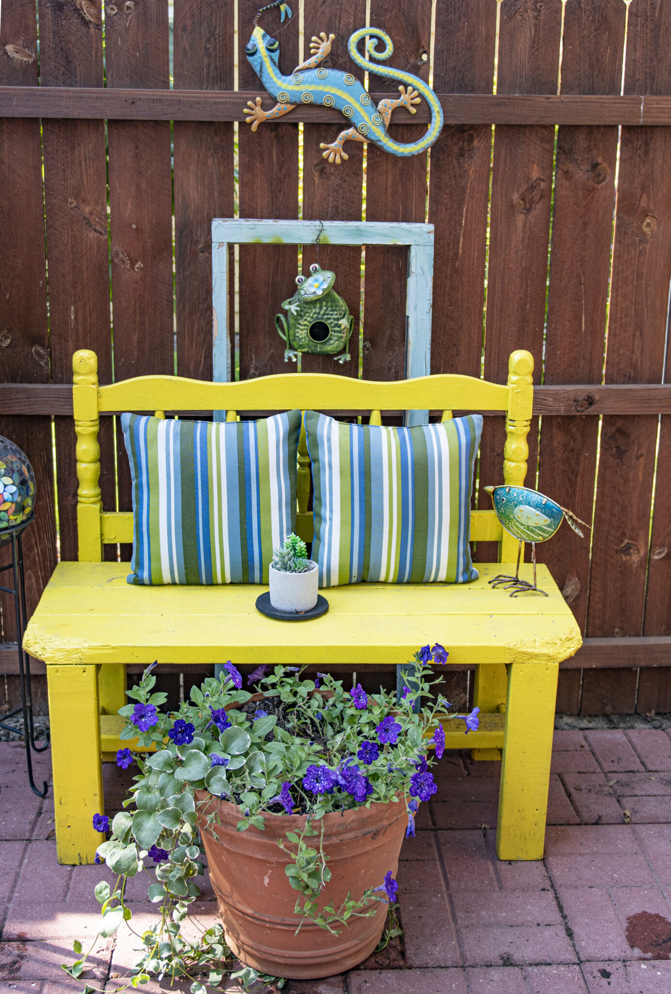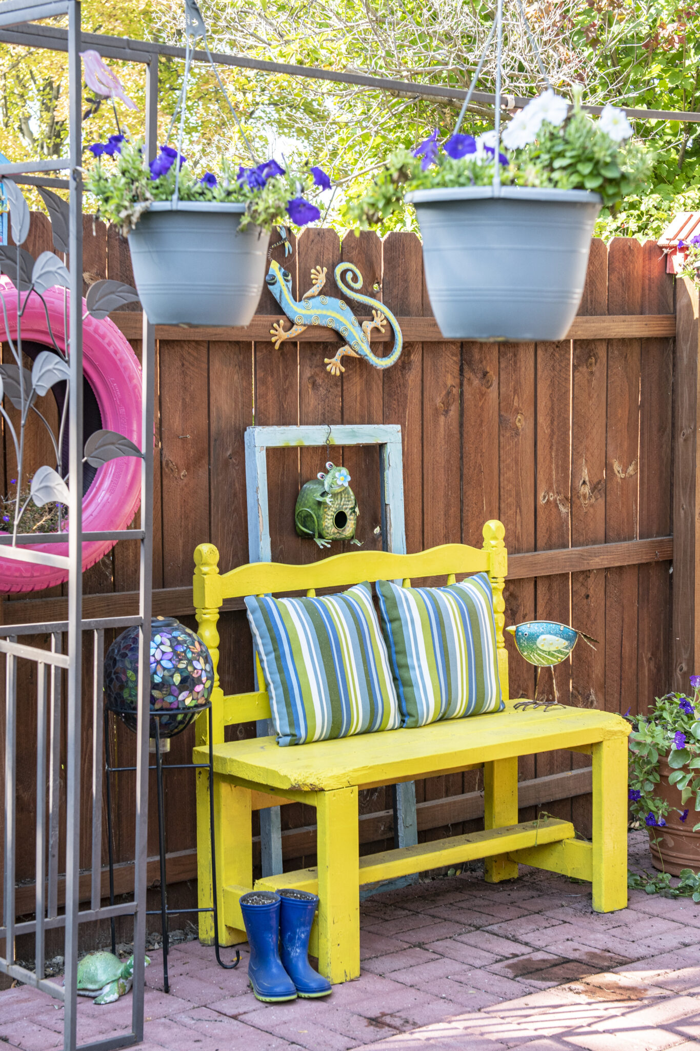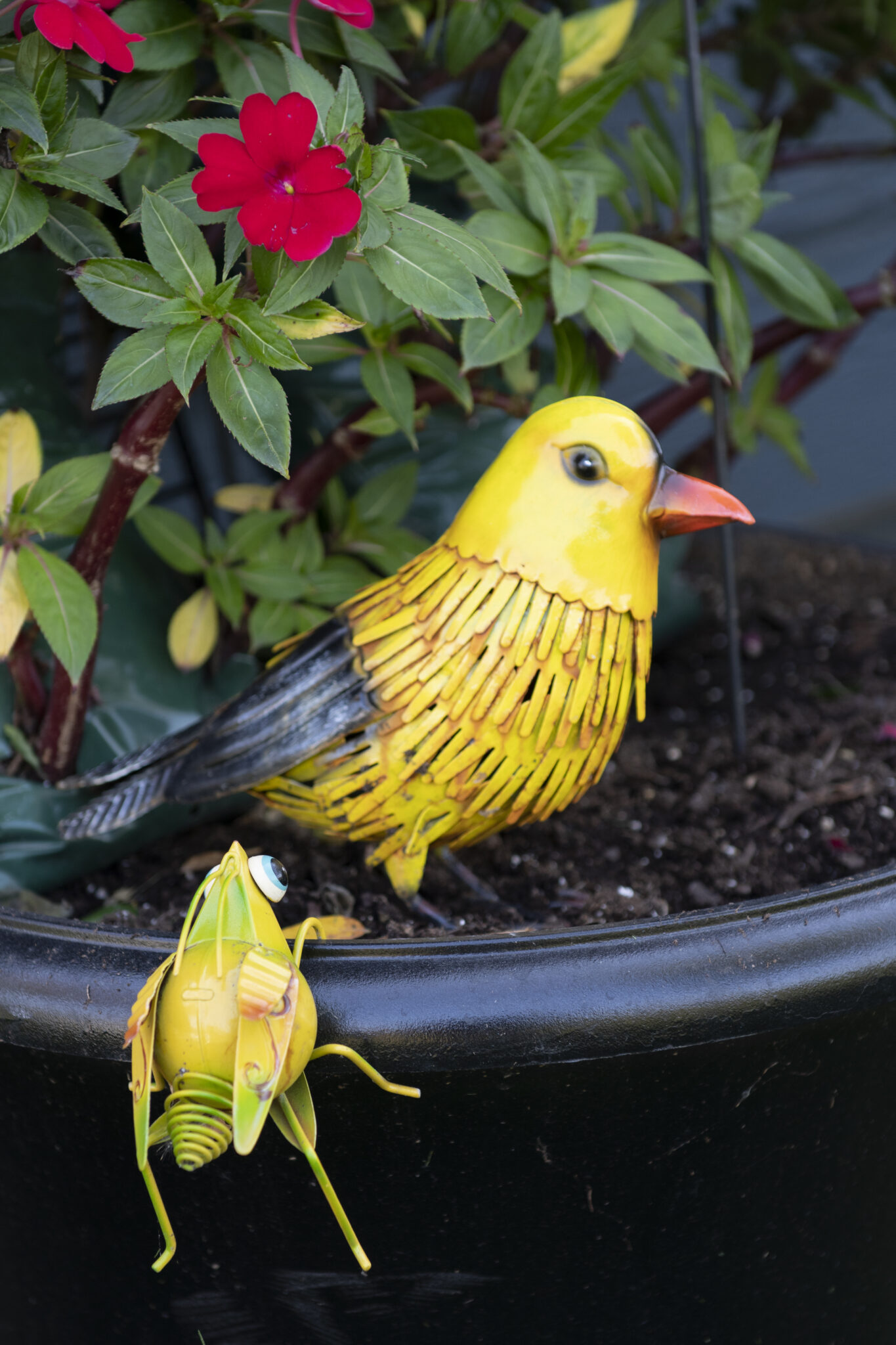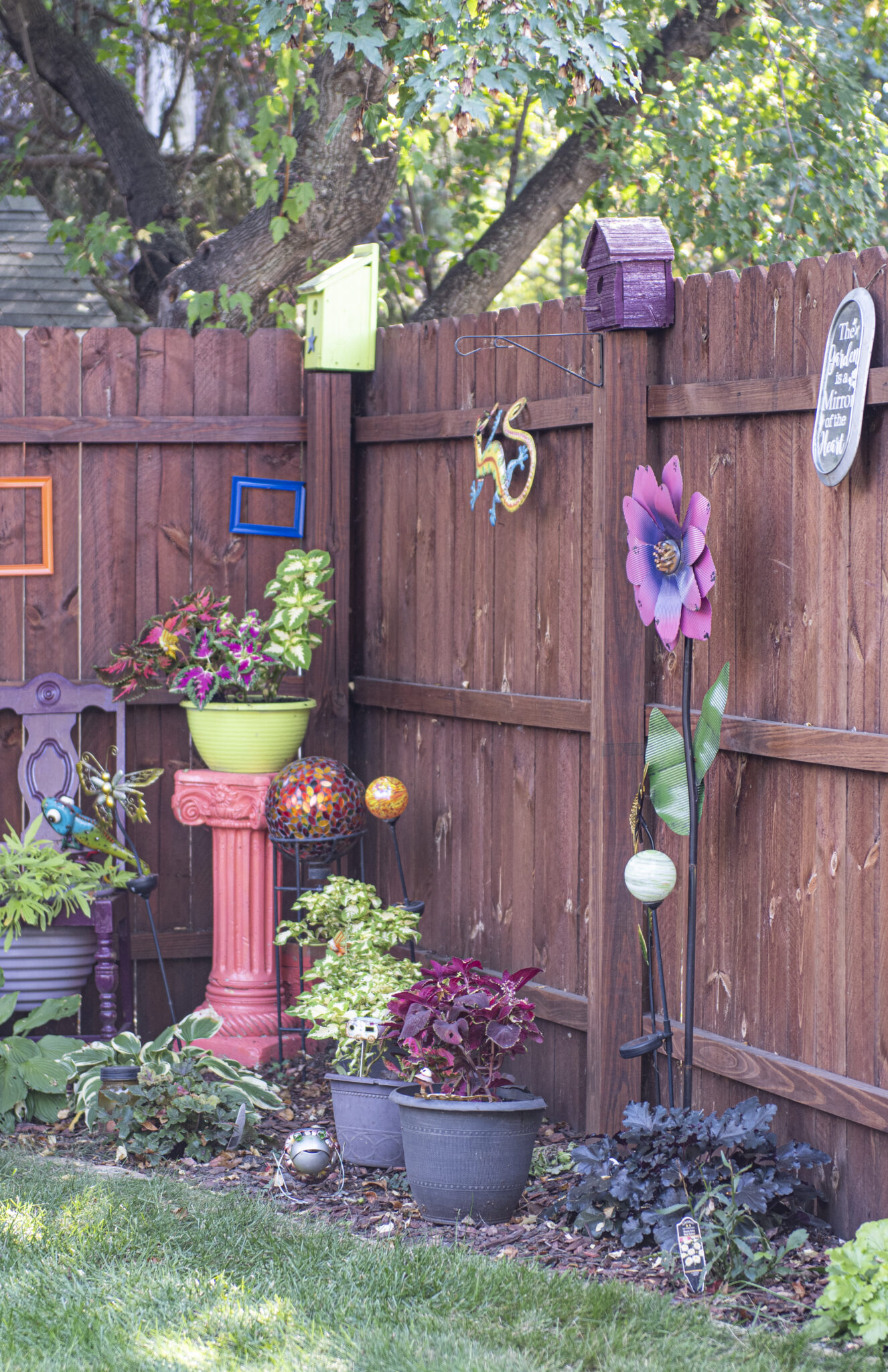Everyone generally knows that gardening is very therapeutic. Being outdoors, getting dirty, and watching the fruits of your labor revealed before your eyes is very satisfying. Soon to be married, Deatrick LaPointe and Erica Hardy find great joy and calmness in creating an outdoor living space that teases the eyes and is just simply joyful to behold. You might gaze upon a lovely pot with several different types of flowers and be surprised to see a pair of eyeballs looking back at you. All the plantings throughout their front and backyards are accented by little creatures, funky props, and everyday objects coated with vibrant color.