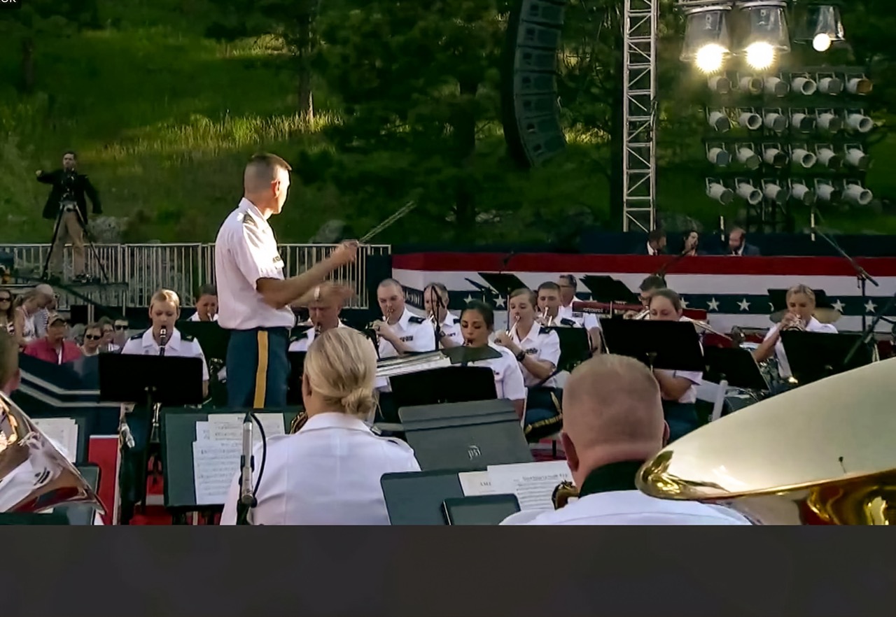 Since inception, the South Dakota band has performed for both soldiers and the public, such as for Christmas functions, patriotic holidays, and various other events. When soldiers return from deployment, for example, “We get a group to play music before and during the event.” Early in the pandemic, the band performed for a presidential visit to Mount Rushmore.