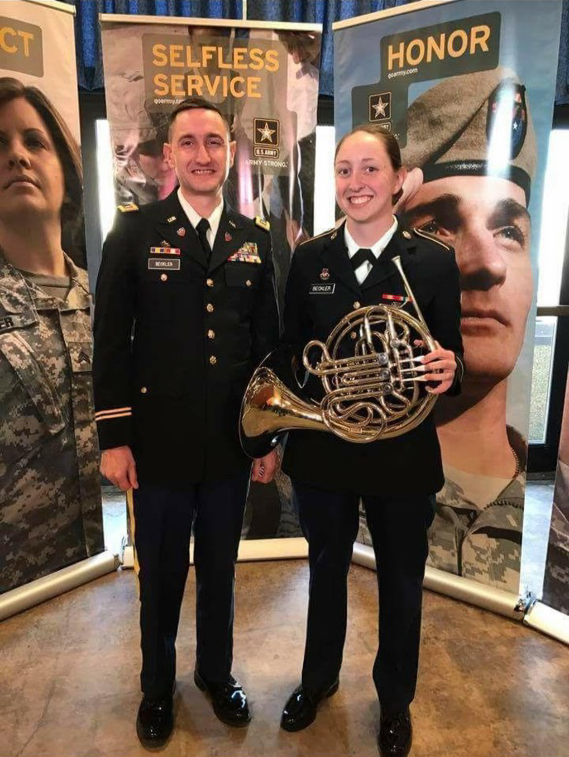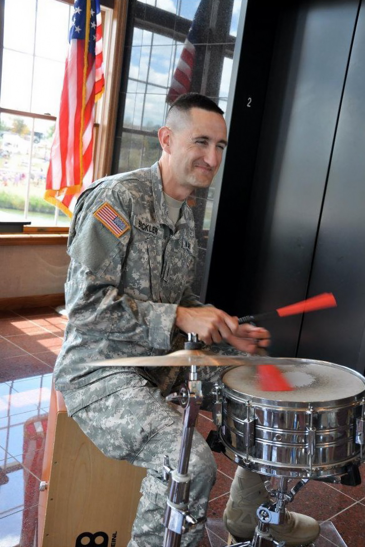 Beckler joined the National Guard 35 years ago as a drummer when he was a college sophomore. “I joined the 147th in December of 1986 after visiting during a December drill,” he remembers. “My college roommate convinced me to visit, and I did the audition that same weekend. I was enlisted within about a week.” In 1998, he became commander of the 147th Army Band. Now in his 24th year in the role, he notes band commanders commonly hold the job for 20 years or more.