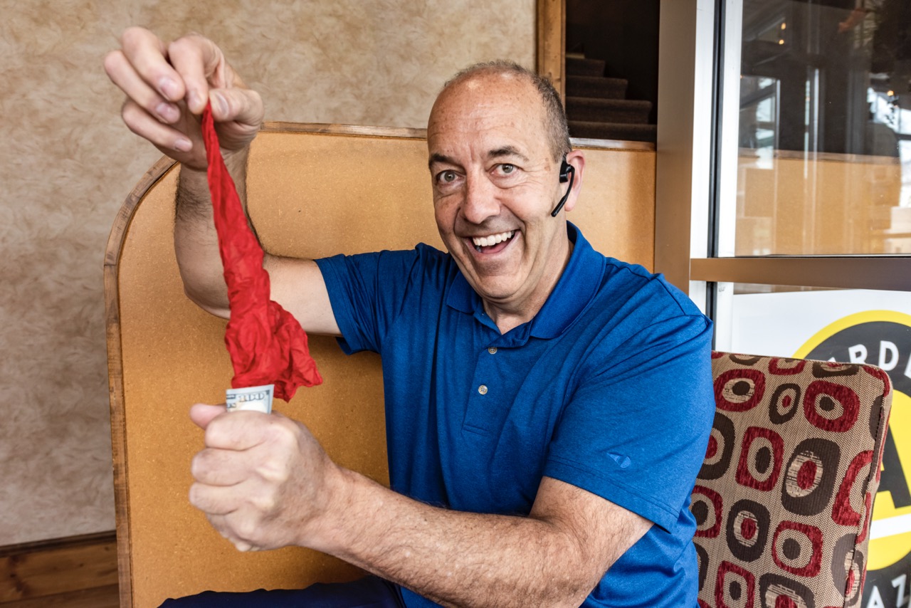 “He wasn’t a big name,” he said, “but it was an awesome show!” The real excitement came after he found his brother’s magic set and its ball vase, a simple trick in which a ball disappears and reappears. “After figuring it out, I took it to preschool, and the kids’ reaction was amazing.” The performing bug bit.